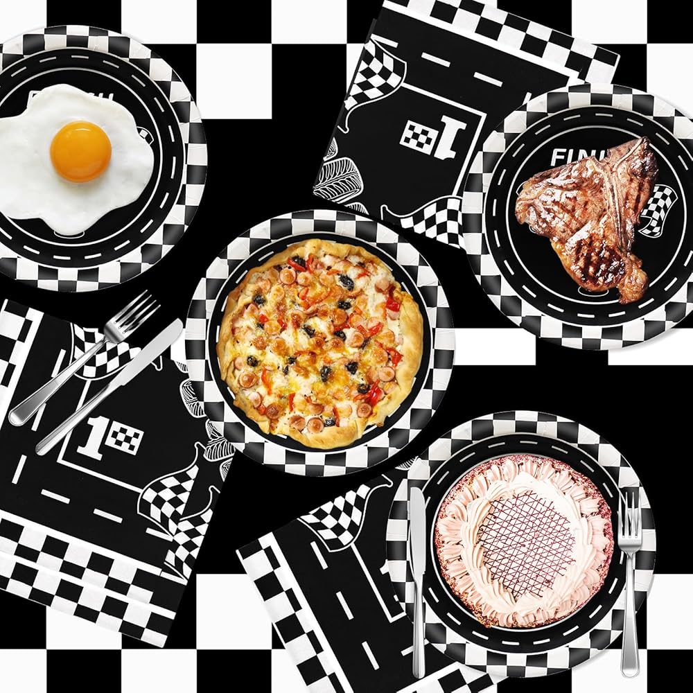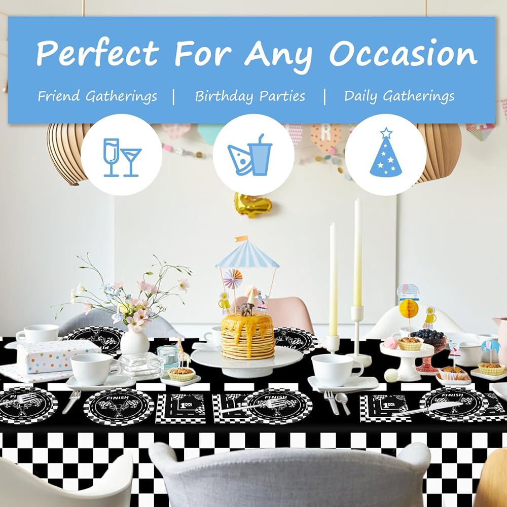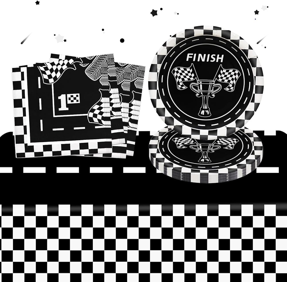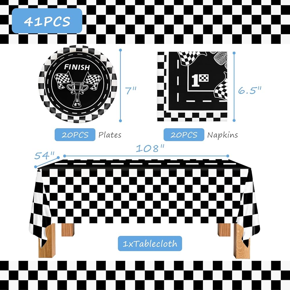 مجموعة أدوات مائدة حفلات أعياد الميلاد من GLGHMH، 41 قطعة، لوازم حفلات السباق للاستعمال مرة واحدة تتضمن مفرش طاولة واحد و20 طبقًا و20 منديلًا لتزيين طاولات حفلات أعياد الميلاد للأولاد والبنات والأطفال