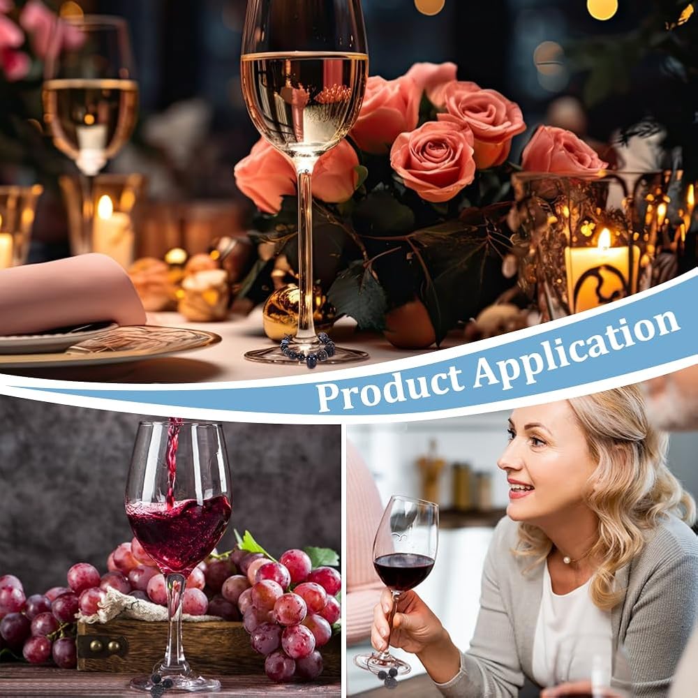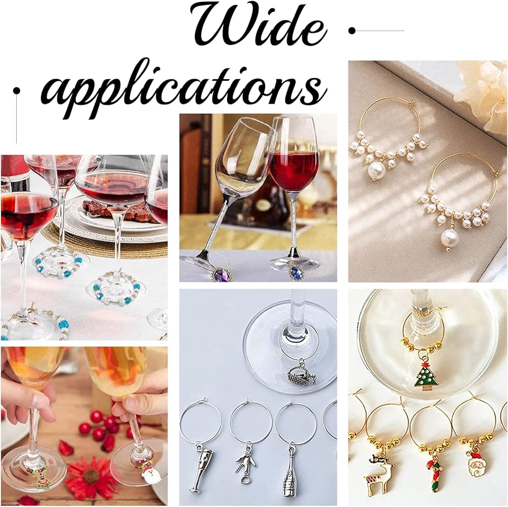 WINE GLASS CHARMS: Slide on beads then bend as needed when adding beads to lock beads on wire. These round wine glasses rings jump, are suitable as markers for New Year celebrations, wedding party, gathering, birthday party, etc.