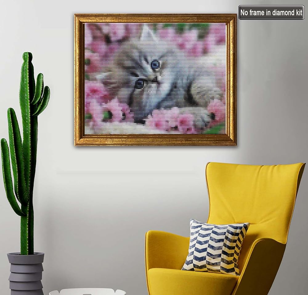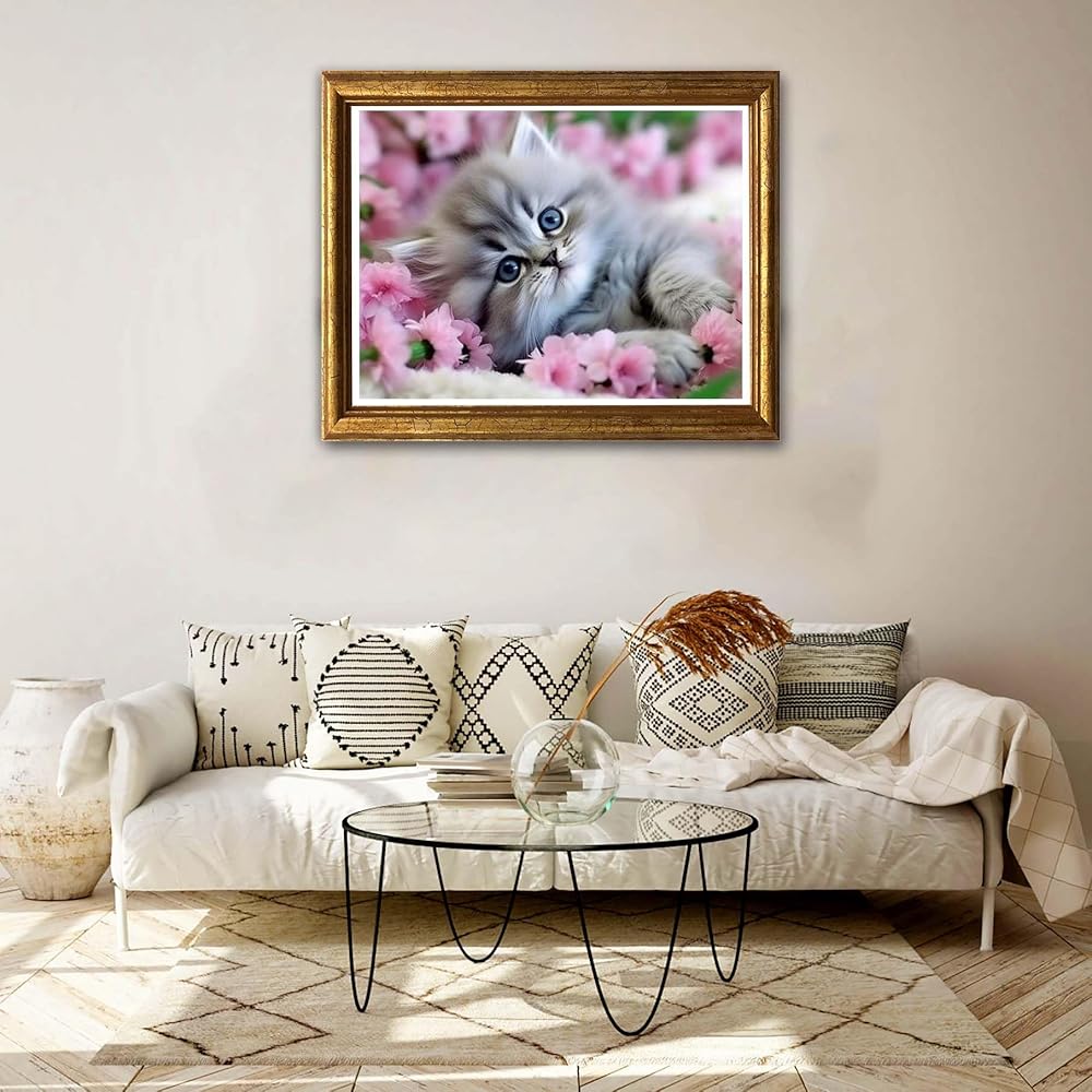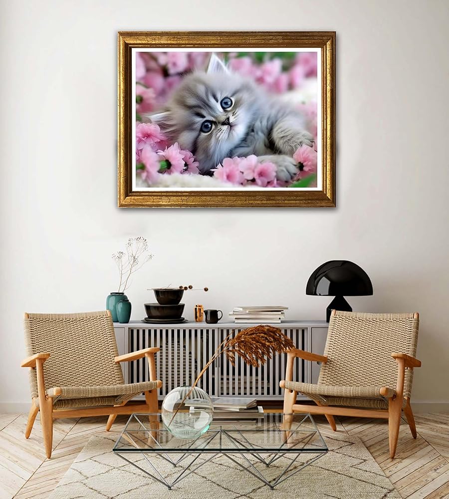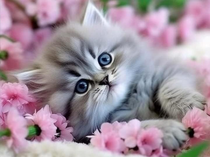 Jungobiu 5D الماس مجموعات الطلاء القط لطيف، DIY الماس الفن الزهور مجموعات الطلاء مع الماس الحفر الكامل جولة الكريستال حجر الراين التطريز المستخدمة للمنزل مكتب الجدار الديكور 12x16 بوصة