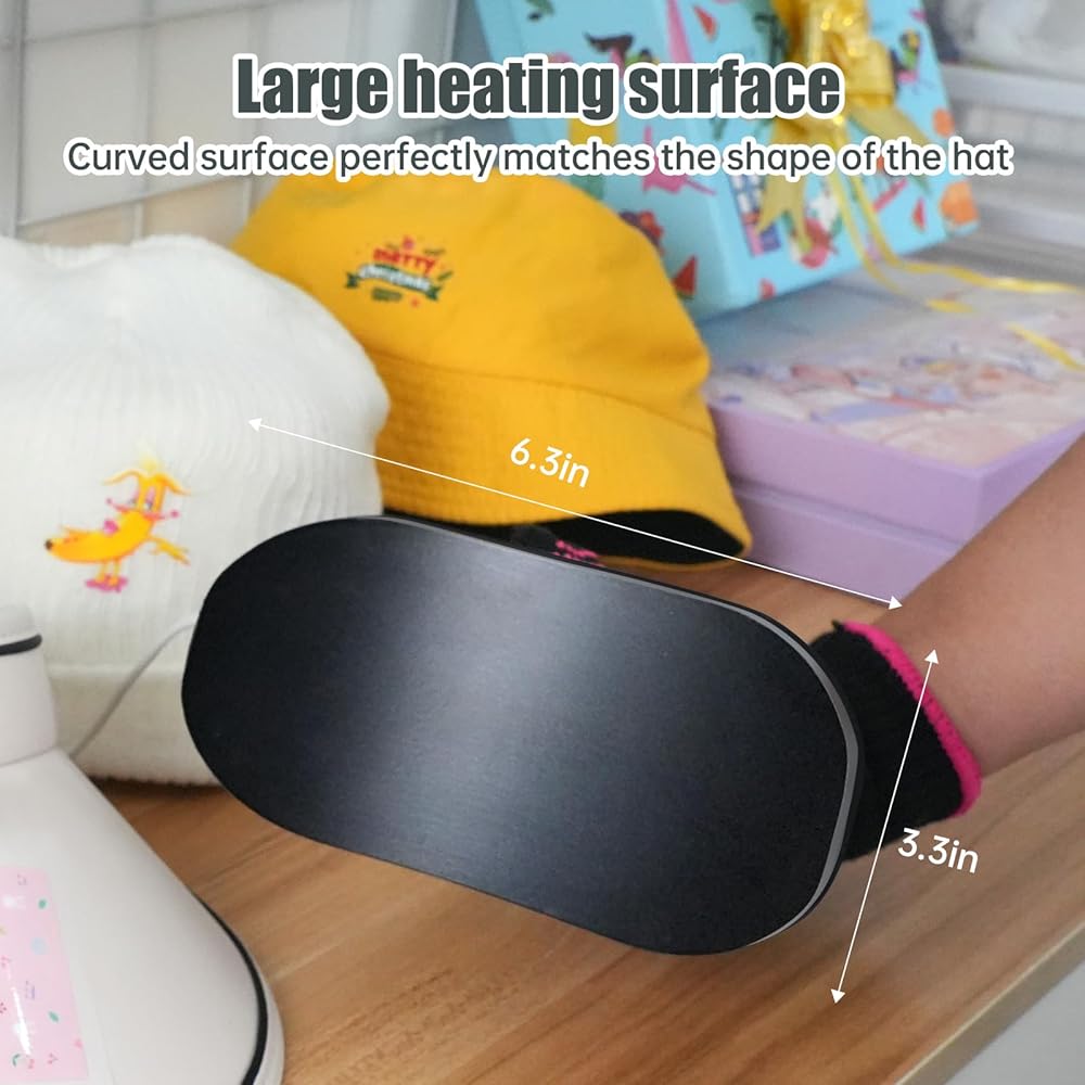 【Small but Mighty】6.3 x 3.3 in curved ceramic-coated heat plat is perfect for hat press.The mini heat press machine is also very suitable for you to handle some small projects which you don't want to operate the big heat press.