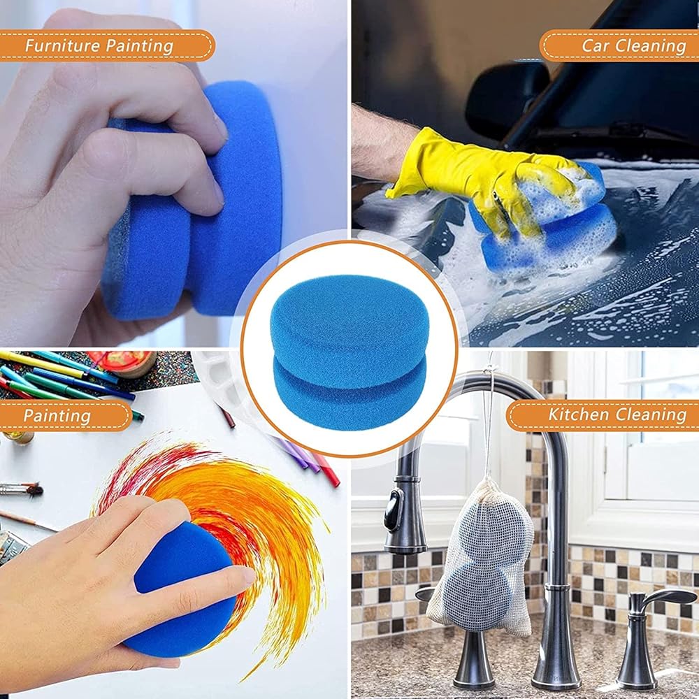 ✅【WIDELY USED】This paint sponge applicator is a perfect match for art and painting. It is also suitable for household, kitchen cleaning and home decoration projects. It can be used with acrylic, oil, watercolor, fabric paint and dyes; also can be used for automobile waxing, polishing and maintenance, tire, spread glaze, sealant.