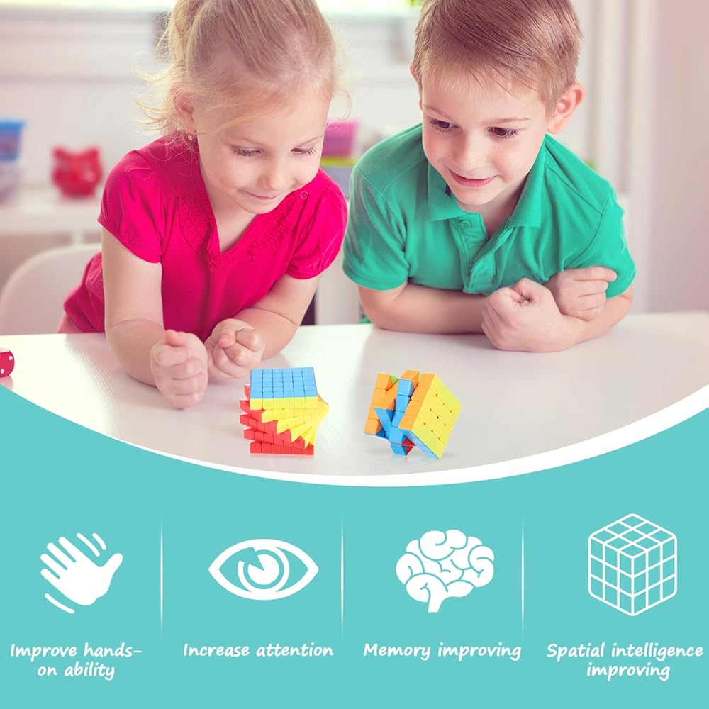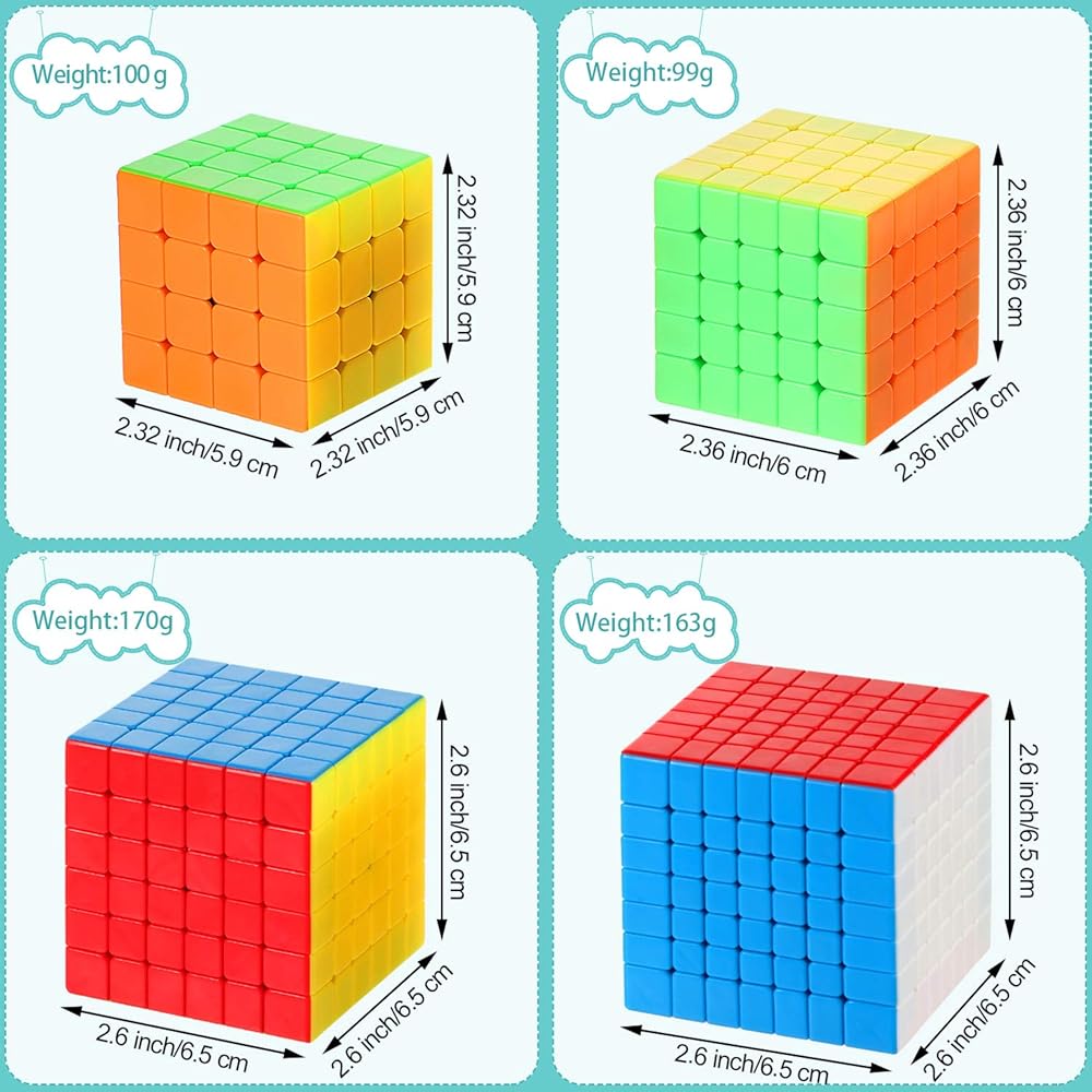 مجموعة مكعبات السرعة السحرية بدون ملصقات 4 × 4 5 × 5 6 × 6 7 × 7 × 7 بدون ملصقات من 4 قطع