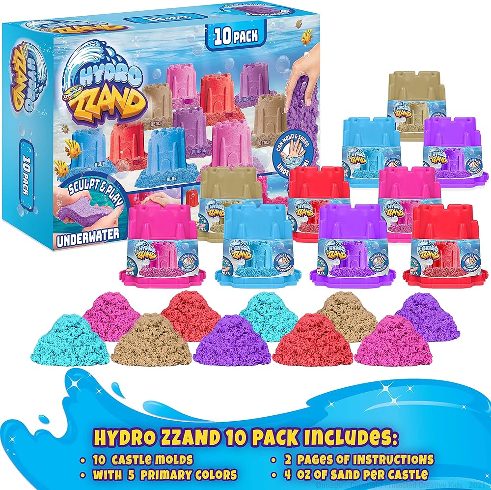 One Kit With Everything You Need: Our sandcastle kit includes 10 castle molds and 10 containers with Hydro ZZand in 5 vibrant colors; Use clay dough tools or cookie cutters to add special touches to your artwork! Creativity has no limits