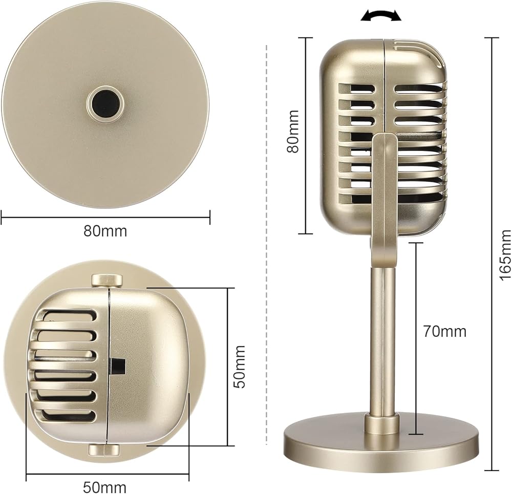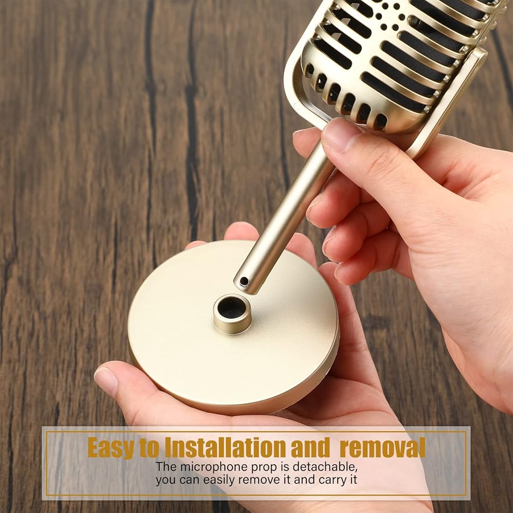 تصميم واقعي وعتيق: تتميز الميكروفونات القديمة للعبة بمظهر واقعي وهي اختيارات مثالية كعناصر زخرفية، كلاسيكية وعتيقة؛ يرجى ملاحظة أنه لا يمكن استخدام هذا الميكروفون إلا كدعامة، ولا توجد وظيفة ميكروفون فعلية