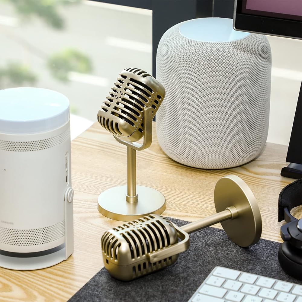 4 قطع من Zubebe ميكروفون قديم دعائم ميكروفون بلاستيكي عتيق لعبة ميكروفون وهمية للهالوين عيد الميلاد ديكور طاولة المسرح لحفلات الزفاف وأعياد الميلاد واللعب التظاهري (ذهبي)