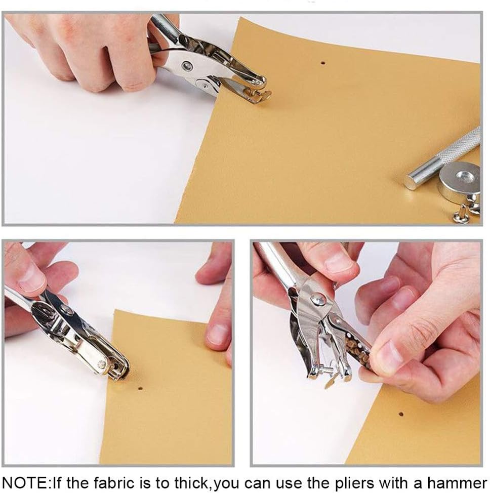 🔔DIFFERENT SIZE AND COLORS: Because the color and material of each piece of clothing or leather are different, We matched 3 size and 4 colors cap rivet,so no matter how much clothes and lather you have,a rivet tool box will do all things.
