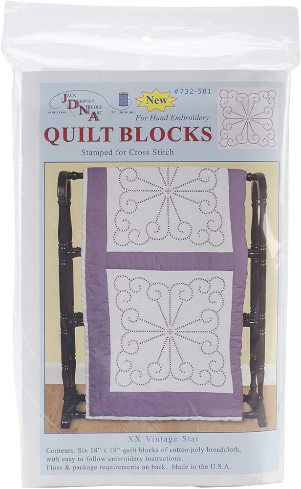 1 x Stamped White Quilt Blocks, XX Vintage Design (Pack of 6)