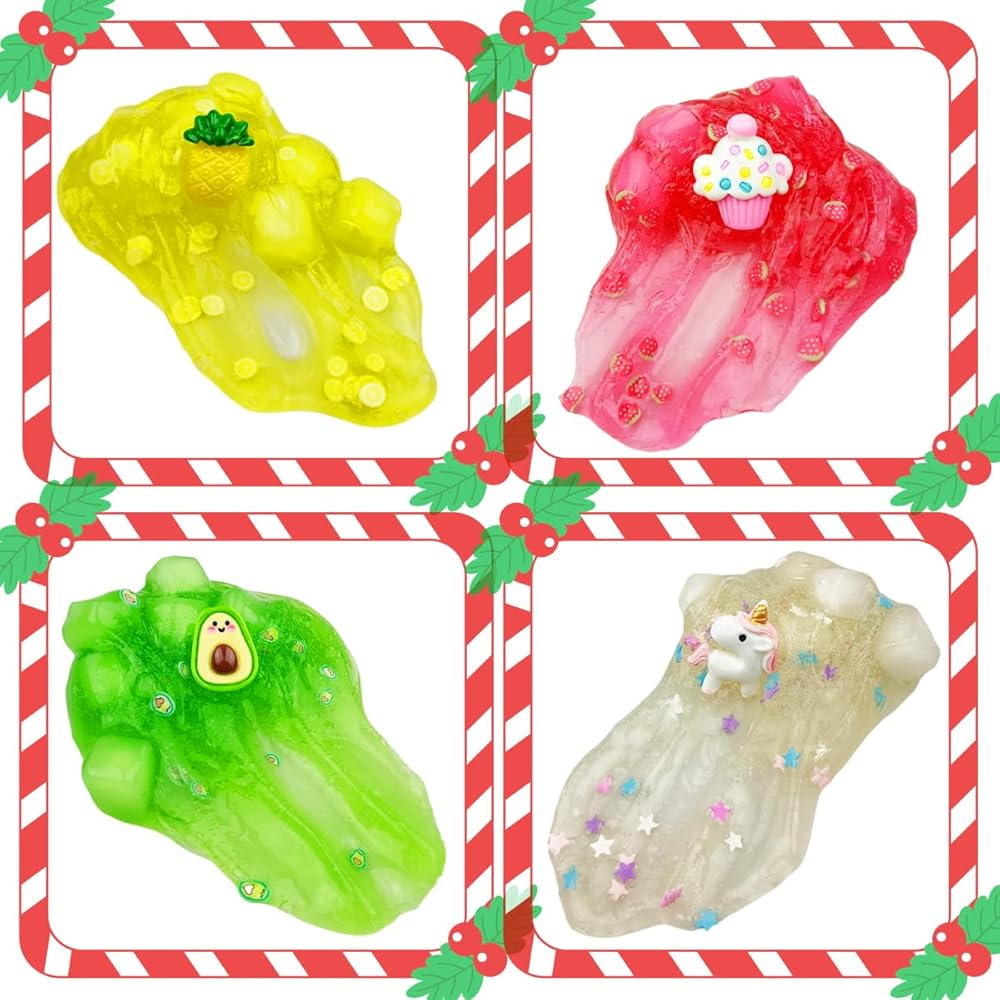 1. مجموعة مكونة من 4 قطع من جيلي كيوب سلايم مثالية للأطفال والأولاد والبنات وجوارب الكريسماس وألعاب الكريسماس وهدايا الكريسماس ومفضلات حفلات الكريسماس وحشوات الجوارب