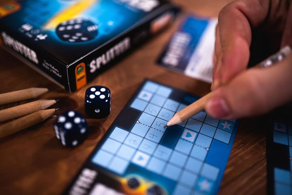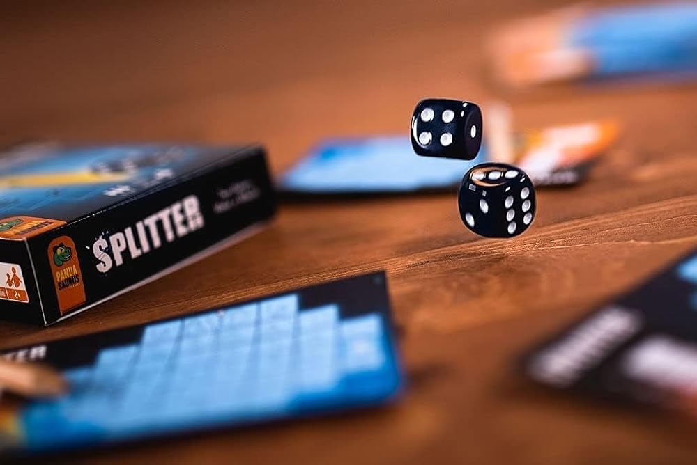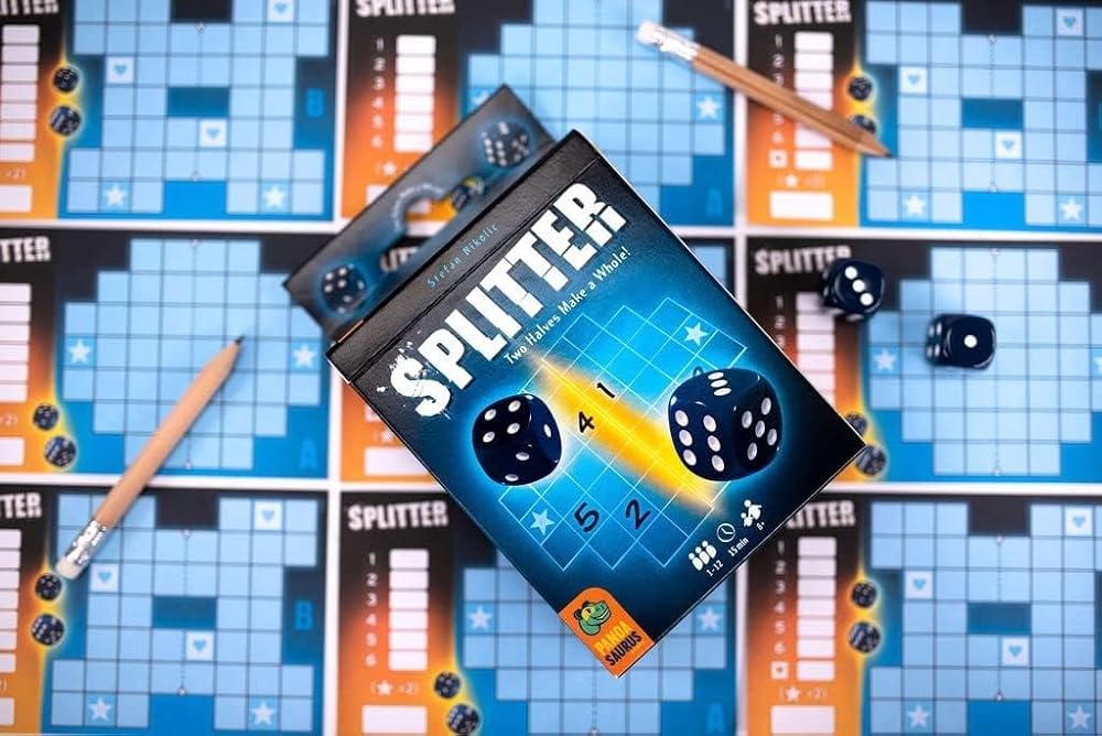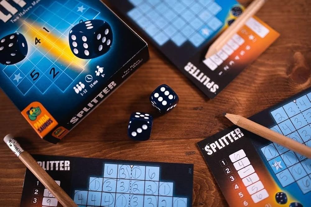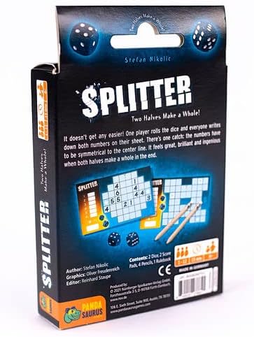 Splitter Dice Game - A Symmetrical Challenge of Numbers and Strategy, Roll-and-Write Puzzle Game, Family Game for Kids and Adults, Ages 8+, 1-12 Players, 15 Minute Playtime, Made by Pandasaurus Games