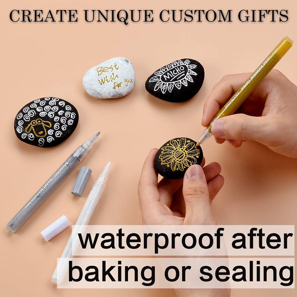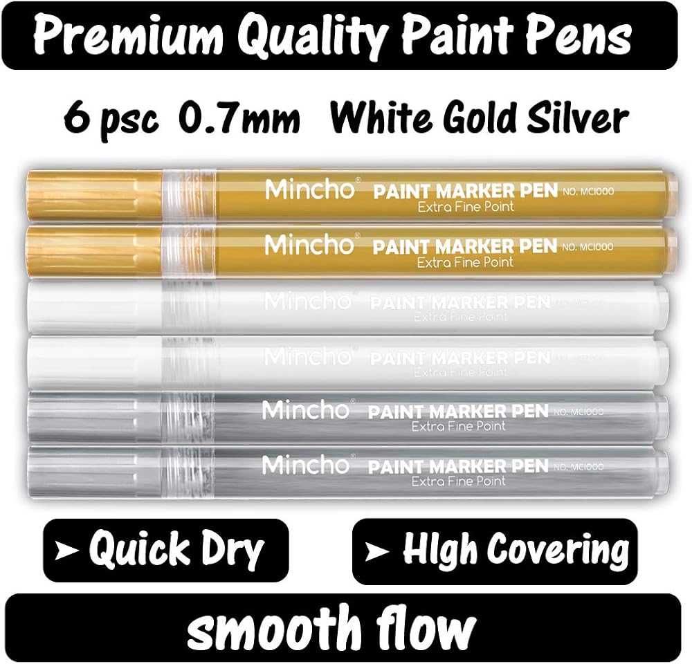قلم ماركر بطلاء أبيض أكريليك عالي الجودة من مينشو يستخدم للرسم الزخرفي والإبداع الفني ومشاريع الرسم الحرفية العامة.