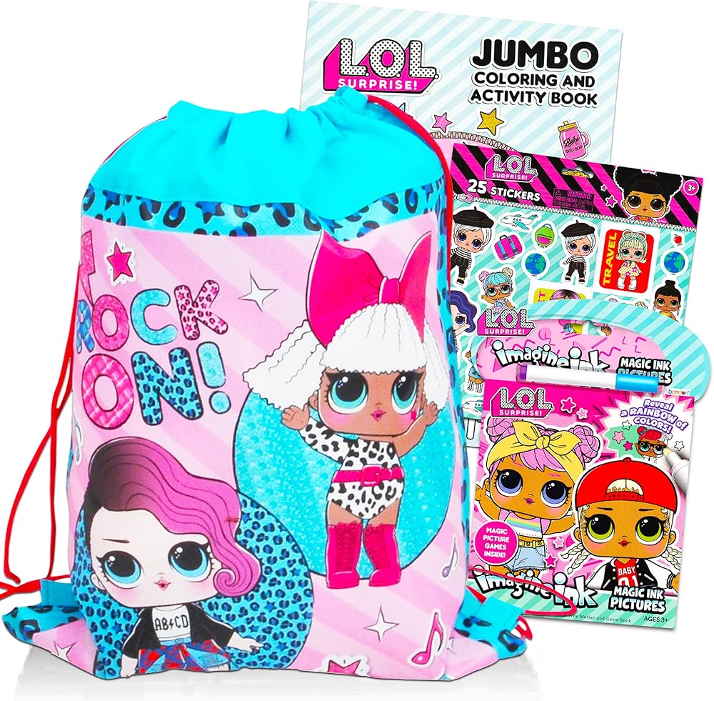 تتضمن مجموعة حقائب السفر من ال او ال دمية 1 شنطة برباط سحب ودمية لول وكتاب تلوين انك من ال او ال دول ايماجين، وكتاب تلوين وتتبع دمية ال او ال، وملصقات دمى ال او ال.