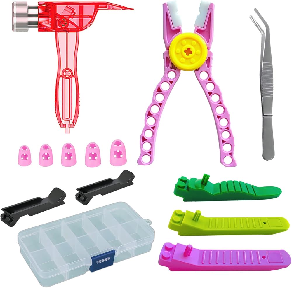 مجموعة أدوات بناء الكتل من SIOYTOER، أدوات فواصل الطوب المتوافقة مع مجموعة أدوات الكتل الصغيرة من Lego & Technic، كماشة مطرقة متعددة الوظائف، وملاقط، وحاميات الأصابع مع صندوق من القصدير (وردي)