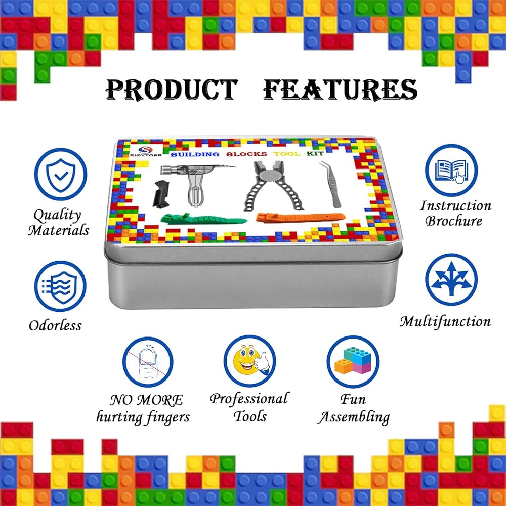 مجموعة أدوات عملية واحترافية. تم تصميم مجموعة أدوات مكعبات البناء المطورة هذه خصيصًا لمحبي مكعبات بناء الألعاب وهي متوافقة مع LEGO & Technic ومكعبات البناء من معظم العلامات التجارية الكبرى. تأتي المجموعة بأكملها مع صندوق قصدير قوي، بما في ذلك مطرقة واحدة متعددة الوظائف، وزردية واحدة للمكعبات، وزوج واحد من الملاقط، و5 فواصل للمكعبات لكل من مكعبات LEGO & Technic الكلاسيكية ومكعبات صغيرة من علامات تجارية مختلفة، و1 صندوق تخزين قابل للتعديل، و5 واقيات للأصابع مع مختلف الأحجام. المجموعة بأكملها ستجعل تجميع مكعبات البناء الخاصة بك وتفكيكها أسرع بكثير وأكثر كفاءة.