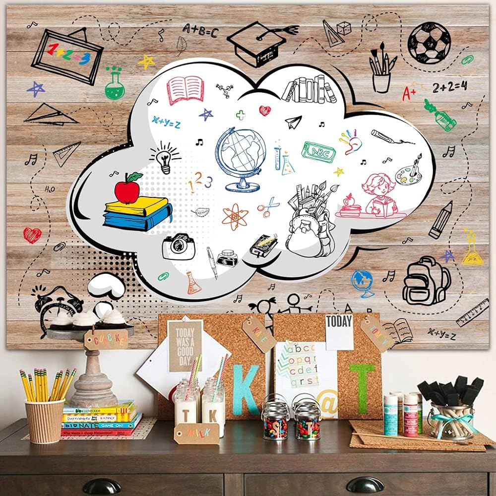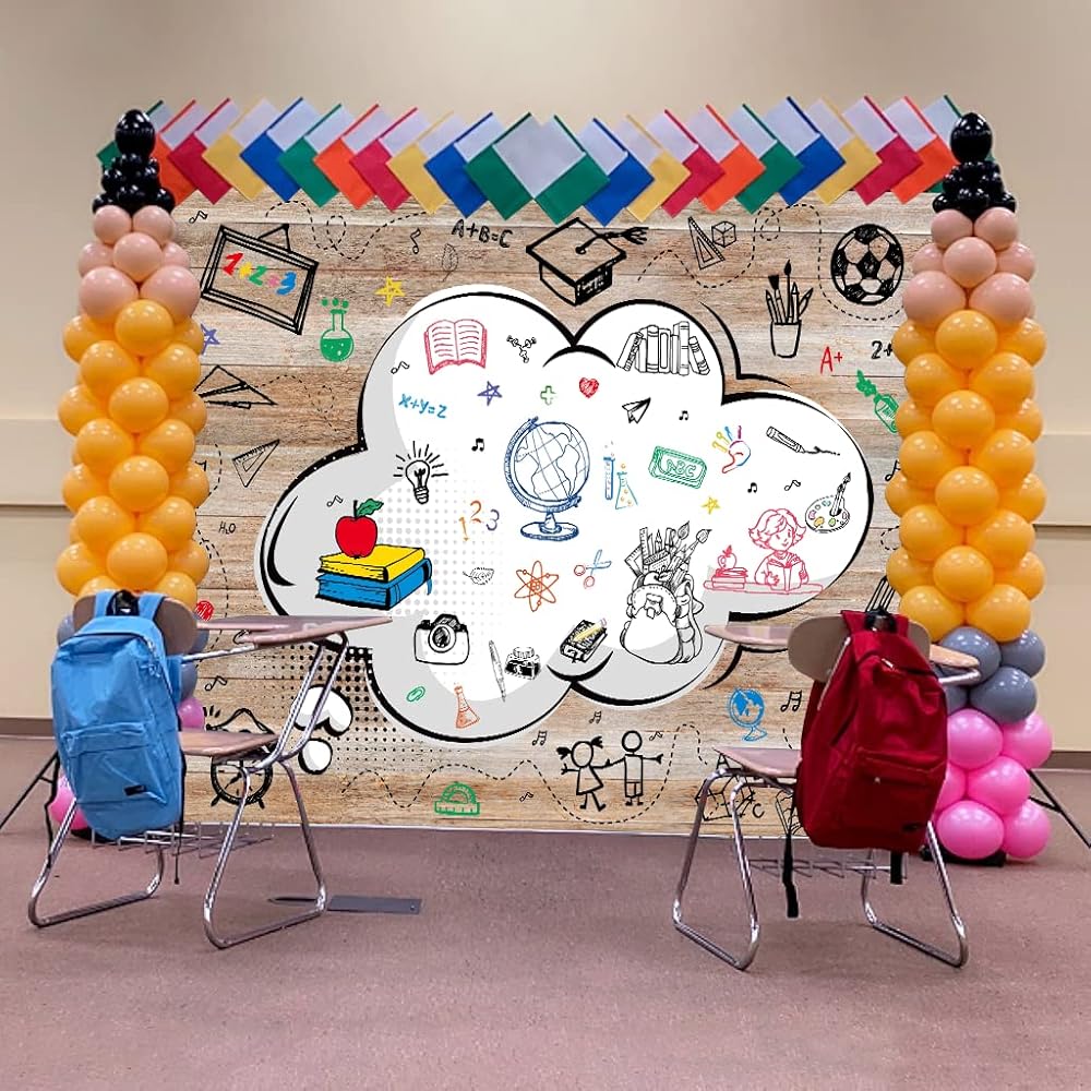 • التعبئة: يتضمن ديكور الفصل الدراسي الخاص بنا لافتة الترحيب خلفية مدرسية متينة وقابلة لإعادة الاستخدام والتي ستشكل ديكورًا رائعًا للحفلات المدرسية. يمكن استخدامها كدعامة لصور الحفلات المدرسية. يمكن استخدامها للترحيب بالطلاب في الفصل الدراسي. عناصر وفيرة مرسومة باليد: الكرات، زجاجات التجارب، قبعات الطبيب، أقلام الرصاص، ساعات المنبه، الكتب، الحقائب المدرسية، إلخ. هذه زينة رائعة للترحيب بأفراد عائلتك أو أصدقائك في احتفال لم الشمل. تخليص اللوازم المدرسية