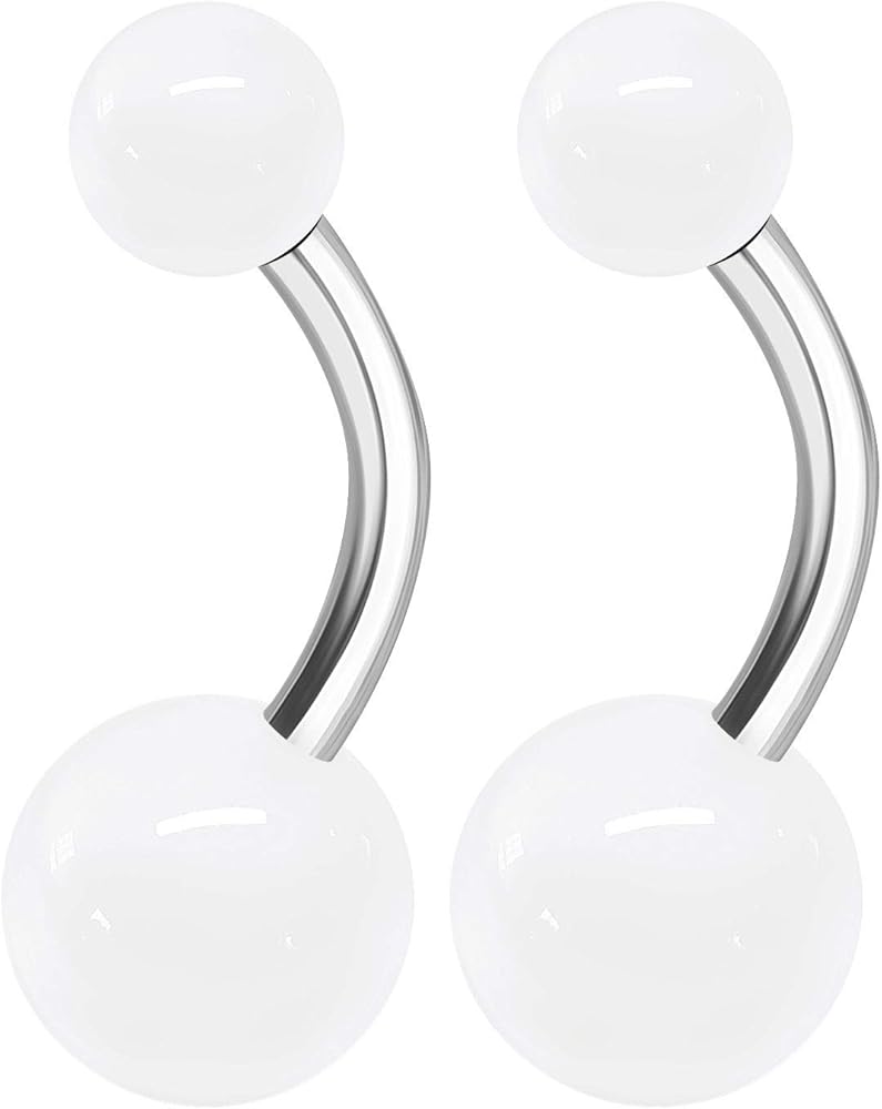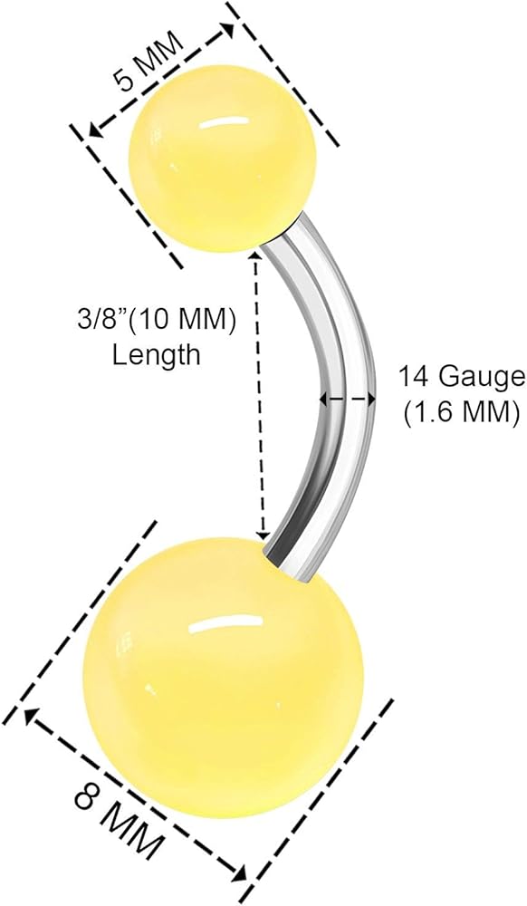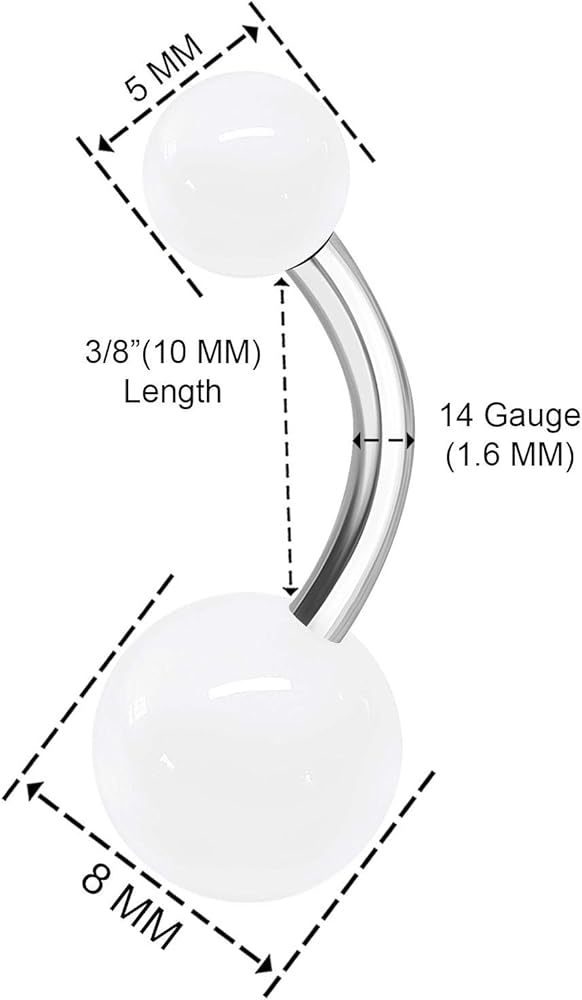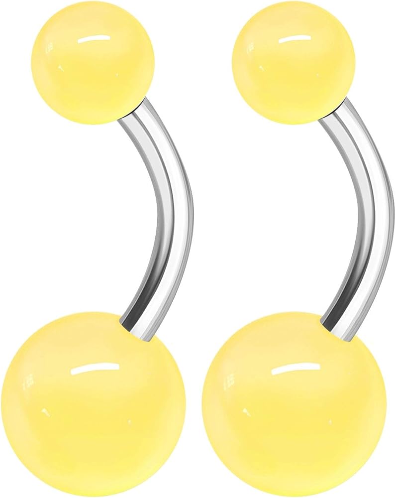 YOU WILL GET Two pieces of 14g (1.6mm) 3/8"(10mm) 316L Surgical Steel navel ring stud 5mm, 8mm solid colored acrylic balls . There are 8 colors for your choice; Black, White, Blue, Green, Pink, Purple, Red and Yellow. They are safely store in satin pouch or jewelry box.
