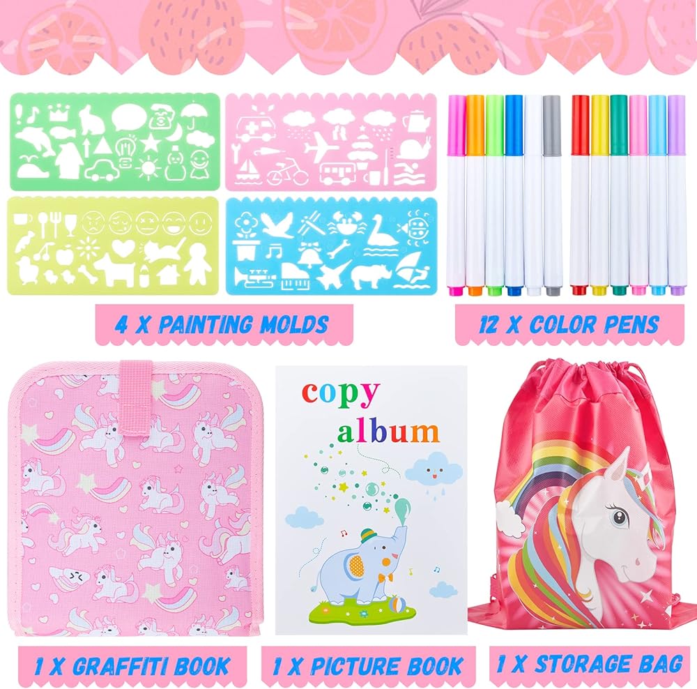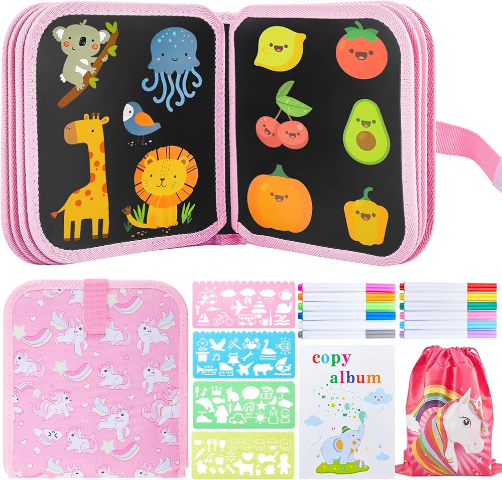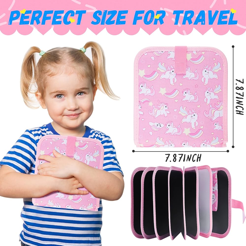 مجموعة كتب رسومات الشعار المبتكرة القابلة للمسح للأطفال، مجموعة رسم كتاب رسم سحري قابلة لإعادة الاستخدام، نشاط طائرة السفر للأطفال الصغار الذين تتراوح أعمارهم بين 3 و4 و5 و6 (وحيد القرن الوردي)