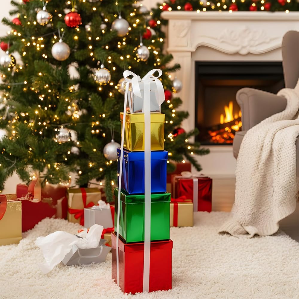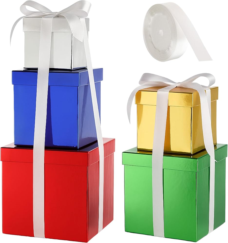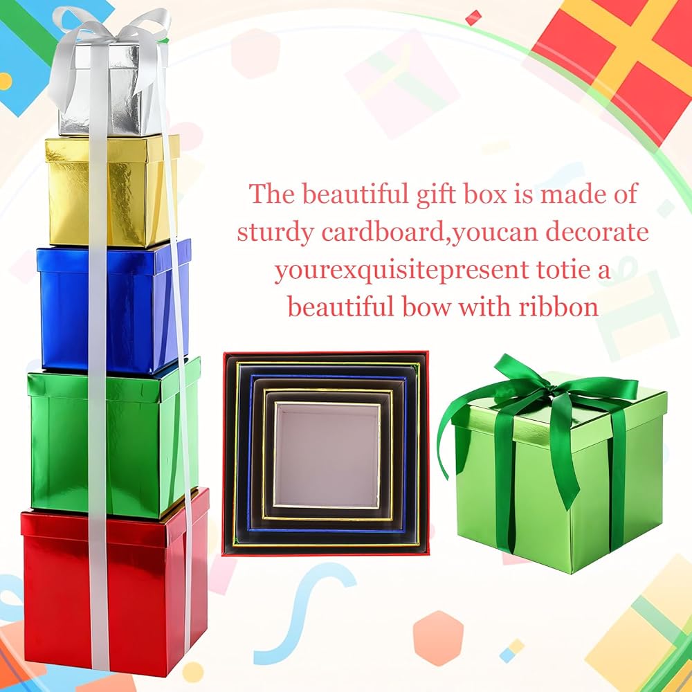 صناديق هدايا من Cholemy 5 PCS مربع مربع مربع مع غطاء من أحجام متنوعة للغطاء والشريط لحفل الزفاف ، عيد الهالوين ، عيد الشكر ، عيد الميلاد ، الذكرى السنوية ، عيد ميلاد ، حفل زفاف (5 لون)