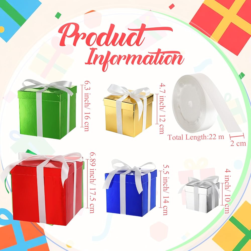 كمية كافية: تتضمن العبوة 5 قطع من صناديق الهدايا مع أغطية ولفة واحدة من الشريط، مما يوفر لك كمية كافية للاستخدام في مناسبات مختلفة دون القلق بشأن نفاد الكمية؛ سواء كنت بحاجة إلى إعداد هدايا لأعياد الميلاد أو حفلات الزفاف أو الذكرى السنوية أو أي مناسبات خاصة أخرى، فهي جيدة لتقديم هدية من القلب لا تُنسى؛ مع 5 أحجام مختلفة من الصناديق، يمكنك بسهولة اختيار الحجم المناسب لهديتك، مما يجعلها أكثر روعة وإبهارًا