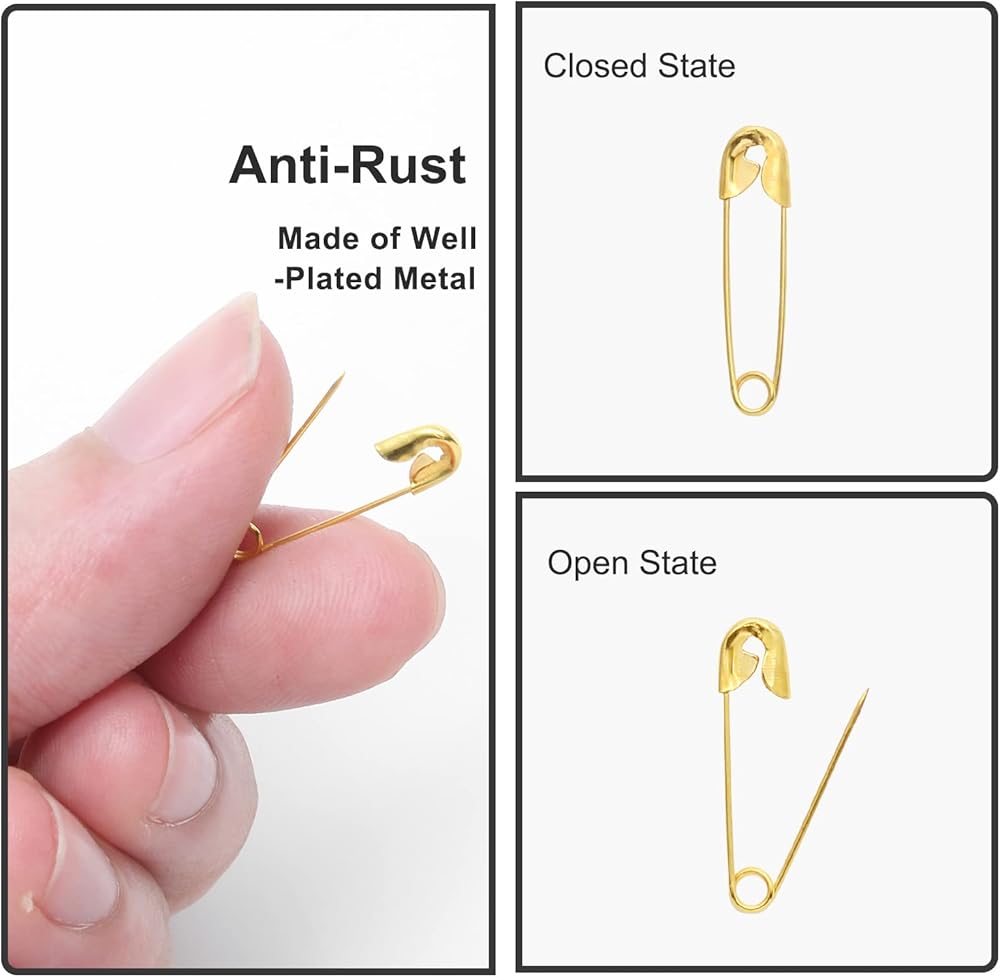 تحتوي دبابيس الأمان المتينة لدينا على أبازيم أمان لتغطية الطرف، وسهلة الاستخدام، ومثالية لتثبيت الملابس، والخياطة، والحرف اليدوية، وصناعة المجوهرات، وخياطة اللحف، وبطاقات الملابس، والديكور، إلخ.