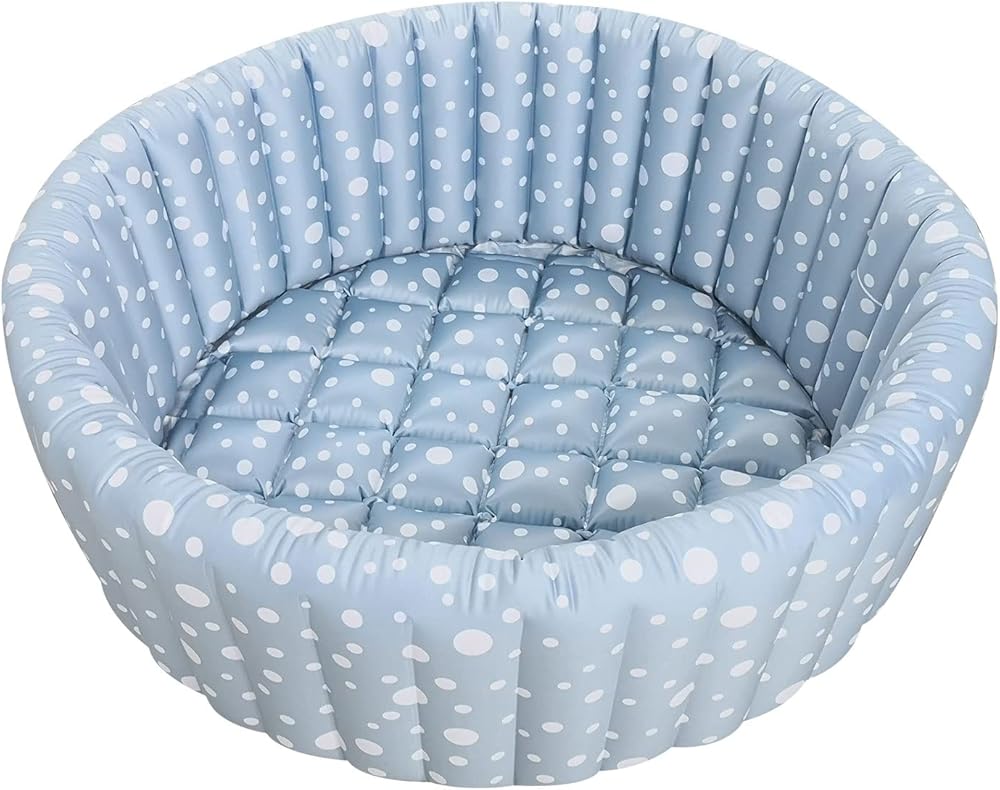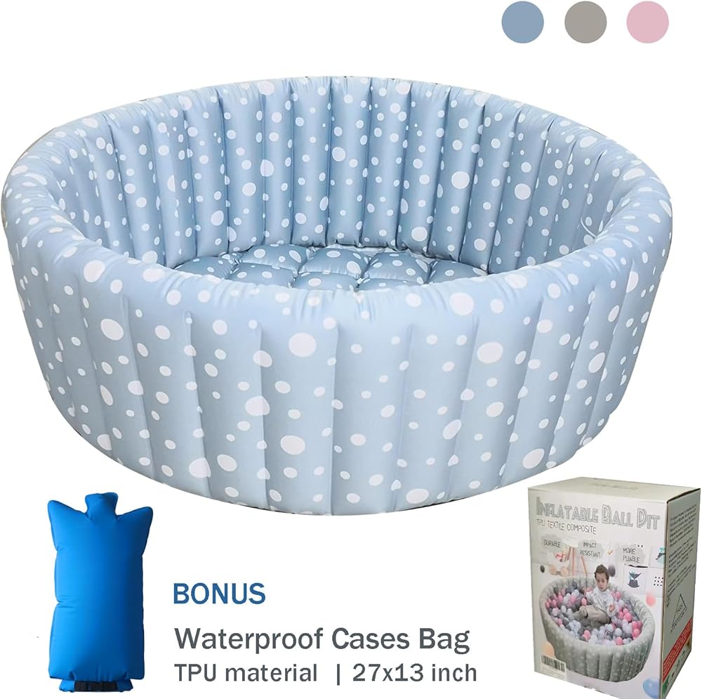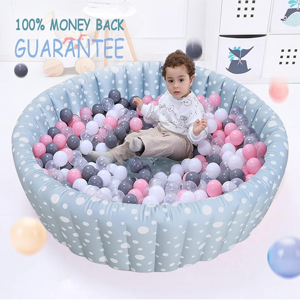 مجموعة ألعاب كرات قابلة للنفخ للأطفال من XDEMODA إن كلاود - تصميم منقط منقط باللون الوردي والأزرق والرمادي، باستخدام نسيج من البولي يوريثان اللدن بالحرارة المقاوم للصدمات فائق القوة مع حقيبة مضخة.