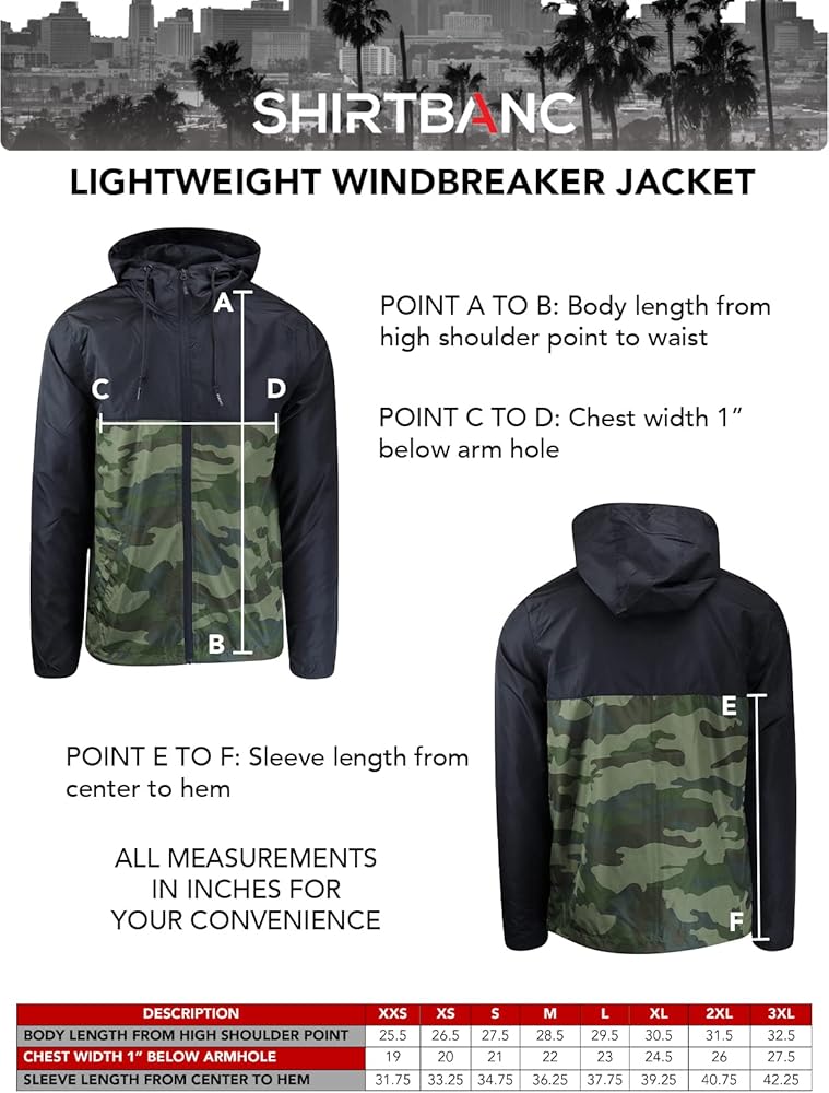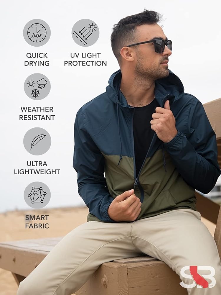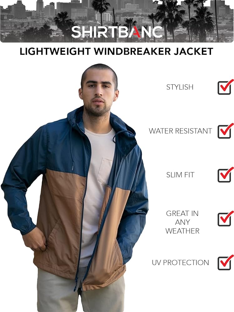 Lightweight Mens Windbreaker Jacket - Running Jacket - Workout Jacket - Water Resistant Jacket - Casual Jacket - Soft to the Touch - Versatille - Great for Layering - Easily Packs and Is Great for all Weater Conditions