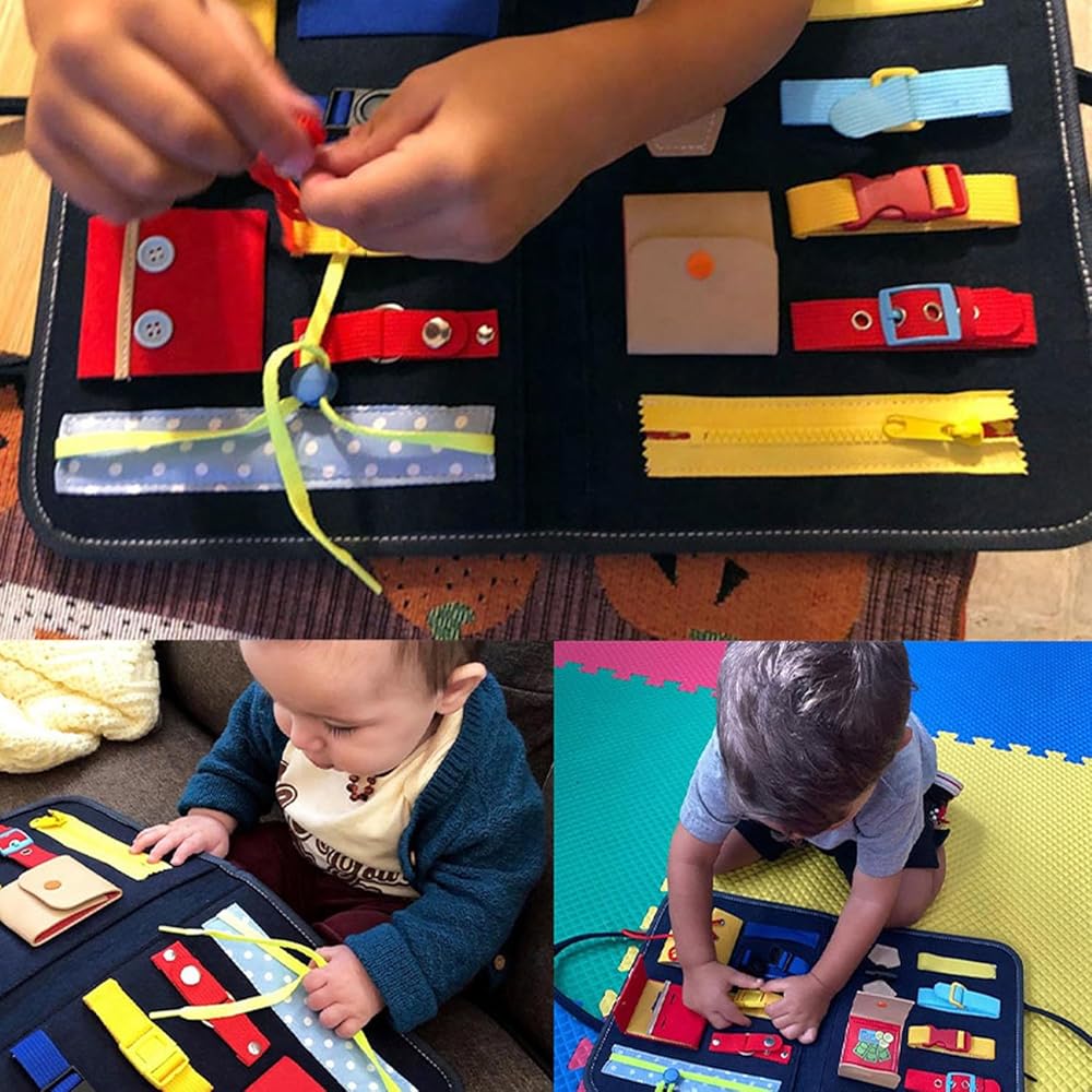لعبة Montessori Board المزدحمة لمدة 1 2 3 3 4 سنوات للأطفال الصغار - أنشطة التعلم في مرحلة ما قبل المدرسة الحسية للمهارات الحركية لللباس الأساسي - ألعاب السفر التعليمية لسيارة الطائرة ، هدية للفتيان الفتيات