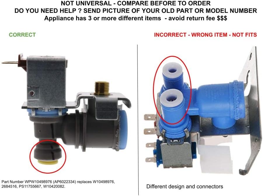 Global Products Refrigerator Water Inlet Valve Compatible with Whirlpool PS11755667: Everything to really get your appliance working! This part has been developed by GlobalSolutionsUSA, upgrading the item by adding components, accessories, and an installation manual to make faster and easier the repair process. The development of this kit is based on the experience of specialized technicians and engineers on home repairs on this field adding the components or accessories suggested by them to solve and completely repair the same day. Appliance Model 59679222011 59679222012 59679222013 59679222014 59679223011 59679223012 59679223013 59679223014 59679223015 59679229011 59679229012 59679229013 59679229014 59679312510 59679313510 59679319510 59679342510 59679343510 59679344510 59679349510 59679422410 59679422411 59679423410 59679423411 59679462410 59679463410 59679522013 59679522014 59679522015 59679523014 59679523015 59679523016 59679529013 59679529014 59679529015 EB9SHKXVQ04 EB9SHKXVQ05 GB2FHDXWB03 GB2FHDXWB04 GB2FHDXWB06 GB2FHDXWB07 GB2FHDXWQ03 GB2FHDXWQ04 GB2FHDXWQ06 GB2FHDXWQ07 GB2FHDXWQ08 GB2FHDXWS05 GB2FHDXWS06 GB2FHDXWS08 GB2FHDXWS09 GB9FHDXWB03 GB9FHDXWB04 GB9FHDXWB06 GB9FHDXWB07 GB9FHDXWQ03 GB9FHDXWQ04 GB9FHDXWQ06 GB9FHDXWQ07 GB9FHDXWS05 GB9FHDXWS06 GB9FHDXWS08 GB9FHDXWS09 GX2FHDXVB05 GX2FHDXVB06 GX2FHDXVB07 GX2FHDXVB08 GX2FHDXVQ04 GX2FHDXVQ05 GX2FHDXVQ06 GX2FHDXVQ07 GX2FHDXVY010 GX2FHDXVY07 GX2FHDXVY08 GX2FHDXVY09 GX5FHDXVB06 GX5FHDXVB07 GX5FHDXVB08 GX5FHDXVQ05 GX5FHDXVQ06 GX5FHDXVQ07 GX5FHDXVY010