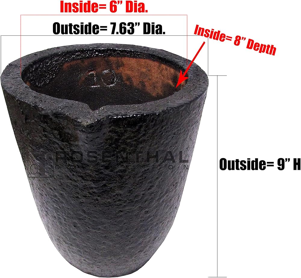 طلاء أسود جديد طويل العمر - بوتقة مسبك جرافيت من الطين الأبعاد الخارجية - القطر 7 انش. × الطول 8.5 انش - الأبعاد الداخلية - القطر 5.5 انش. × عمق 8 انش. مصنفة لتحمل درجات حرارة تصل إلى 1700 درجة فهرنهايت - 3500 درجة فهرنهايت (850 درجة مئوية - 1600 درجة مئوية). استخدام الشعلة أو استخدام الفرن - مصممة للاستخدام مع أفران وأفران الحث بالوقود / الغاز والأفران ذات الحرارة المتوسطة/العالية. روزينثال كوليكشن هي علامة تجارية مسجلة محمية بموجب قانون العلامات التجارية الأمريكي.