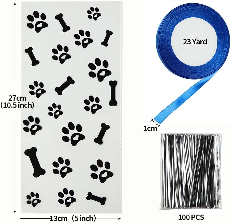 تشمل العبوة: 100 قطعة من أكياس السيلوفان مزدوجة الجوانب مطبوعة على شكل مخالب وعظام بمقاس 27 × 13 سم/ 10.5 × 5 بوصة، مع لفة بطول 23 ياردة وشريط بعرض 1 سم و100 قطعة من ربطات العنق الفضية بألوان فضية وزرقاء سعيدة على التوالي. تناسب أي مناسبة - بدءًا من المناسبات الجادة للبالغين، وحفلات الأطفال إلى حفلات الحيوانات الأليفة. كمية كافية لك لإكمال حلوى الحيوانات الأليفة أو حفلات الأطفال أو تقديم الحلوى.