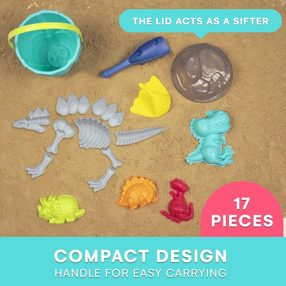 ملونة ومبتكرة: مجموعة ألعاب دلو الديناصور الخاصة بنا هي لعبة شاطئ للسفر ستوفر وتعزز التنسيق بين اليد والعين لأطفالك، وتبني قوتهم وبراعتهم بينما يستمتعون بالديناصورات المفضلة لديهم أينما ذهبت.