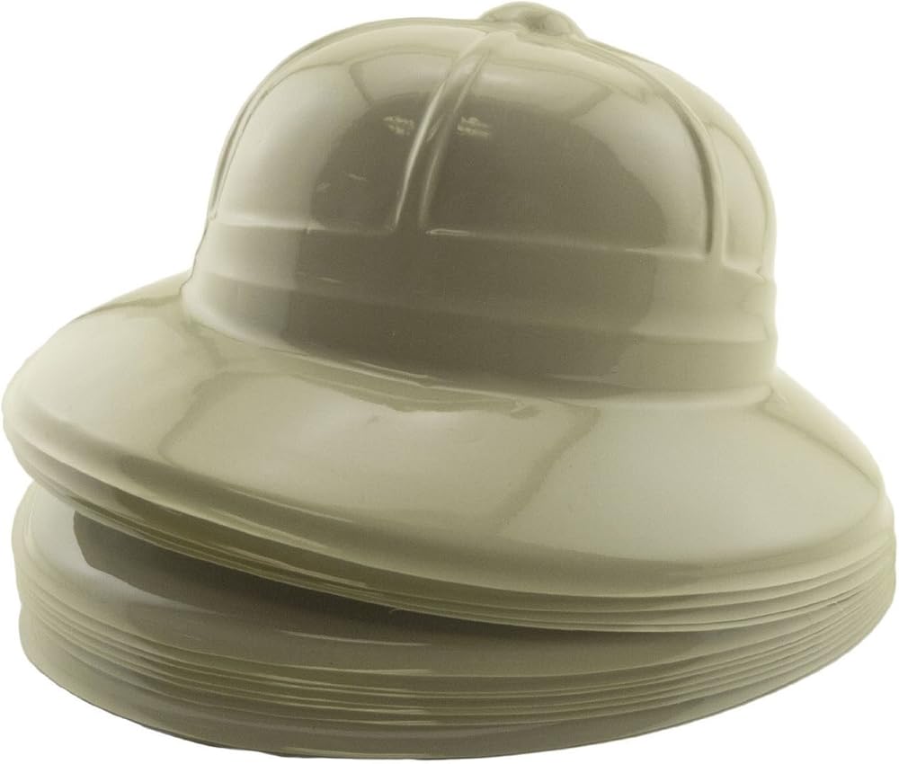 Adorox 12Pc Khaki Beige Soft Plastic Tan Jungle Safari Pith Sun Hat Costume Birthday Party Favor Kids Halloween Toy