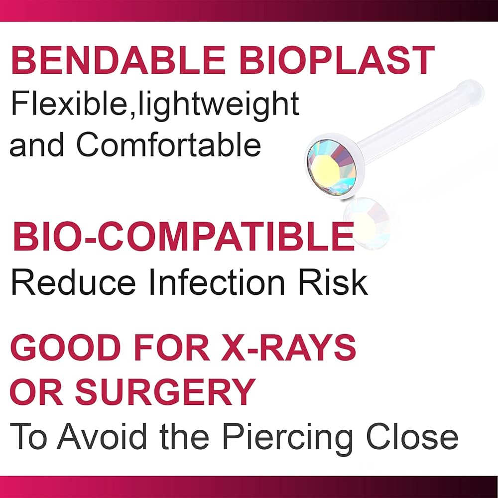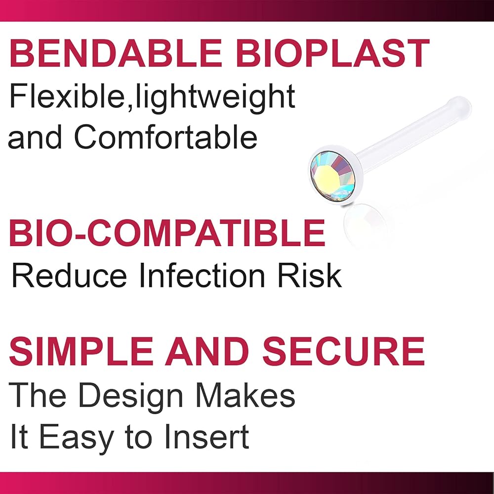 The bendable bioplast nose studs 20 gauge reduce the risk of infection because they are bio-compatible acrylic that are good for new piercing.