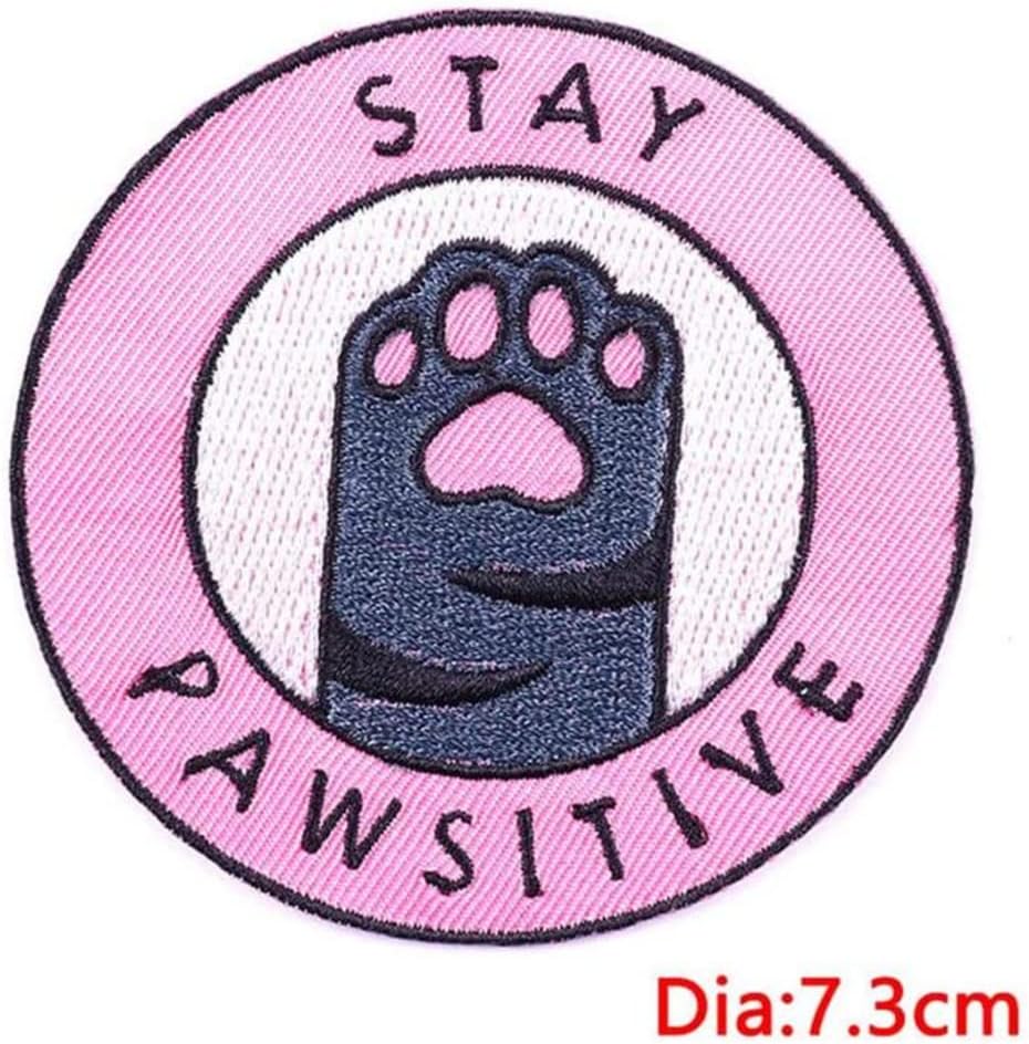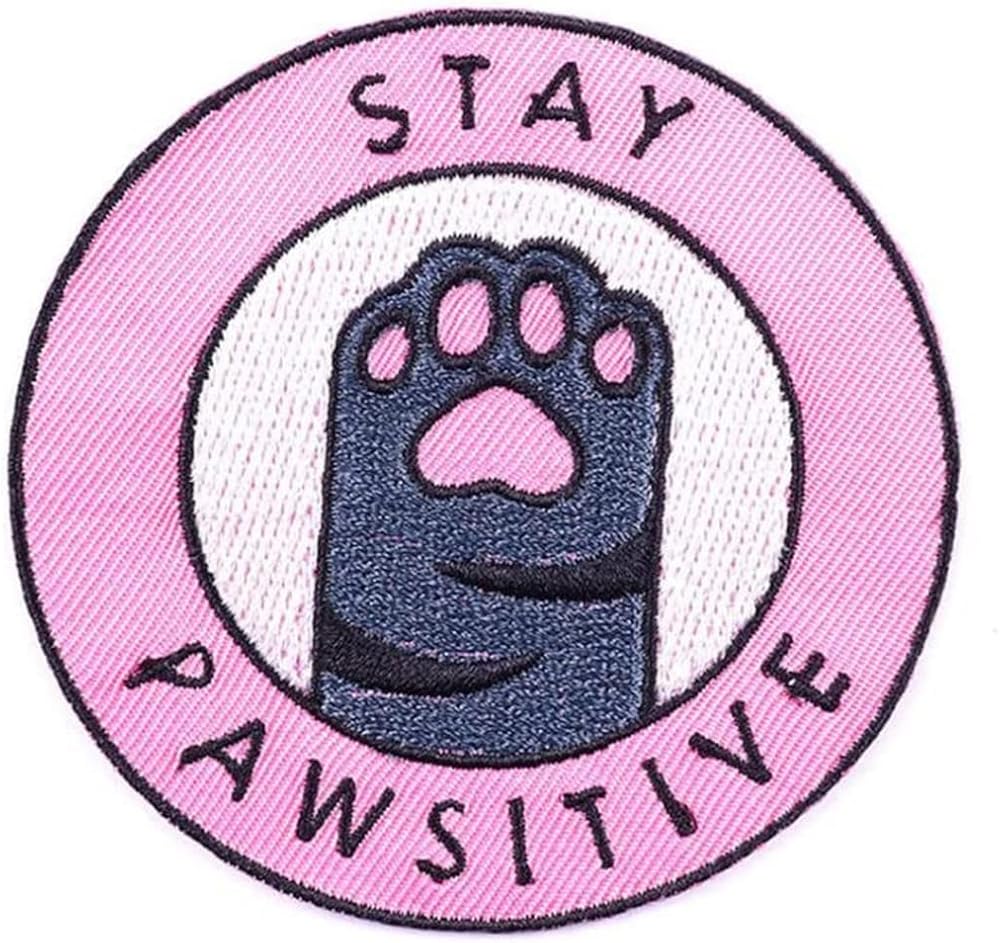 رمادي القط مخلب التصحيح رسالة "البقاء Pawsitive" الحديد على بقع على الملابس لطيف القط التطريز القماش ملصق التصحيح الكرتون PEALAND بقع التطريز للملابس شريط شارة التصحيح للملابس