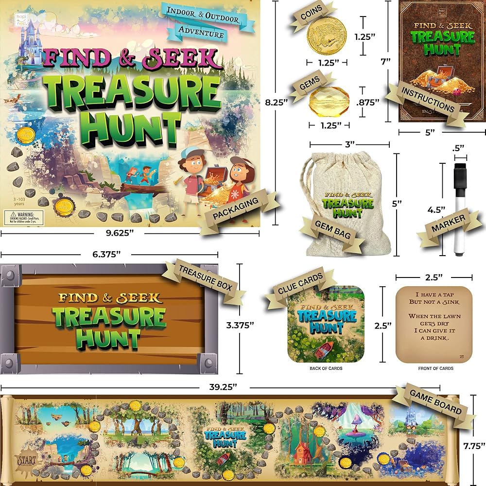 لعبة البحث عن الكنوز والبحث عن البحث عن الكنز للعائلة من هابينيست للأطفال الصغار من سن 3 4 5 6 7 8 9 10 11 12 سنة فما فوق - لعبة صيد سكافينجر للأولاد والبنات