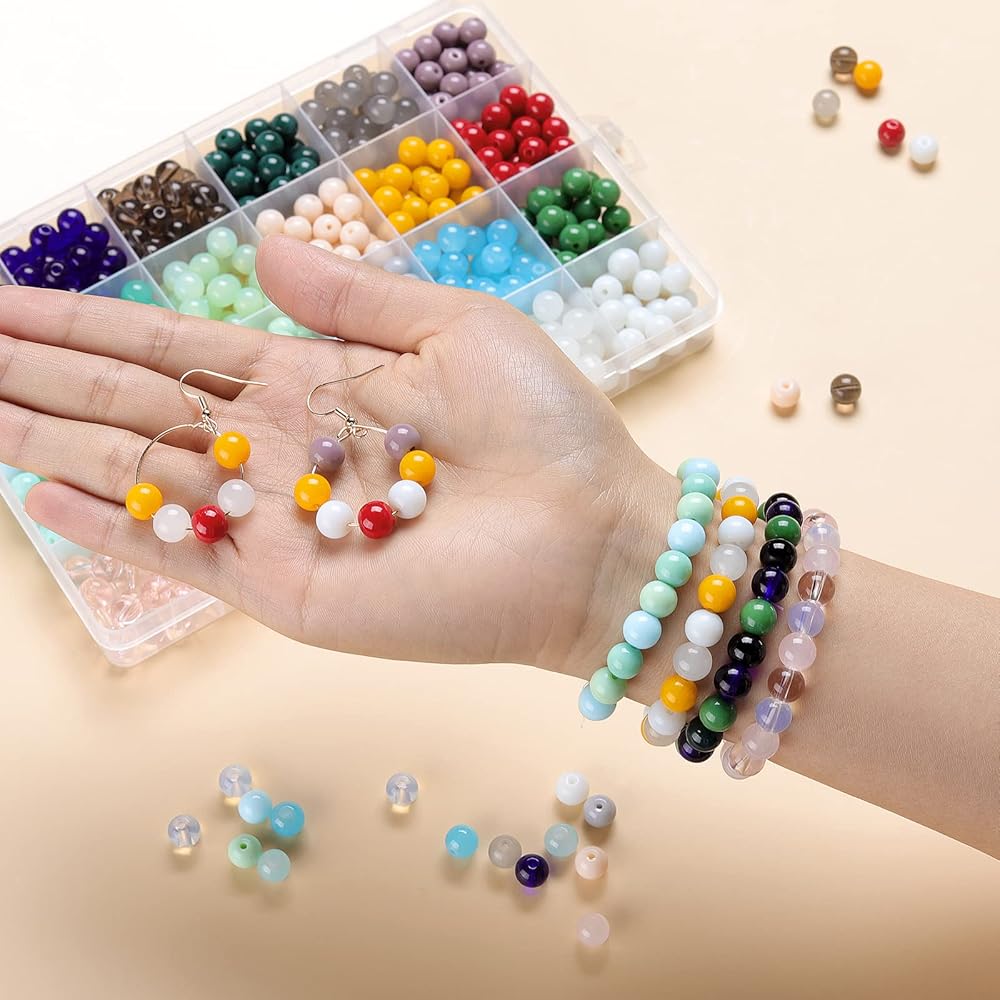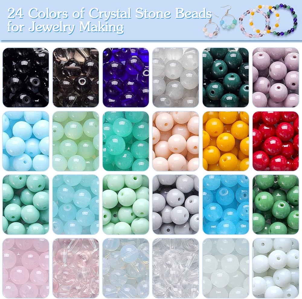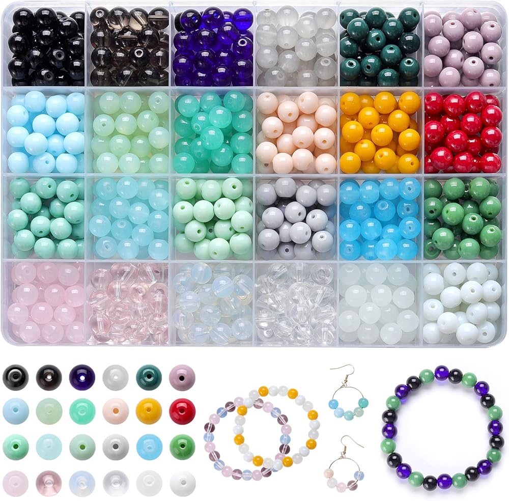 8MM Glass Beads:Crystal beads Hole Size 1mm,600pc healing bead ,25pcs/material. Suitable for most DIY beads for jewelry making or handicraft creation.
