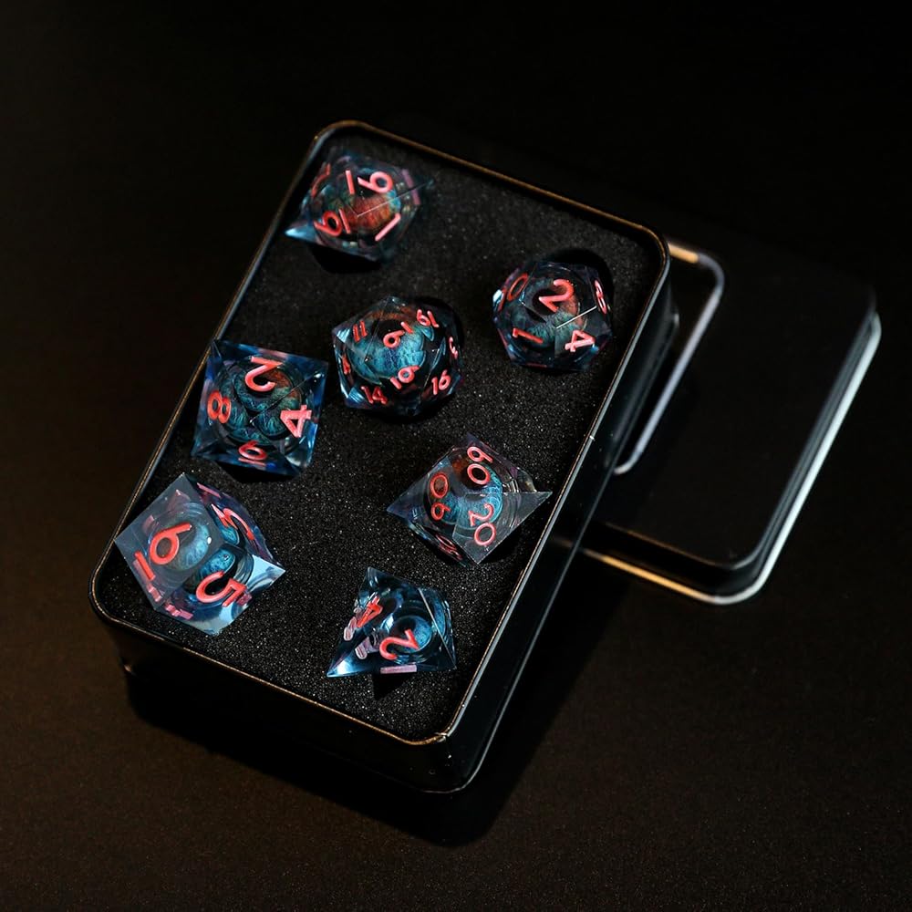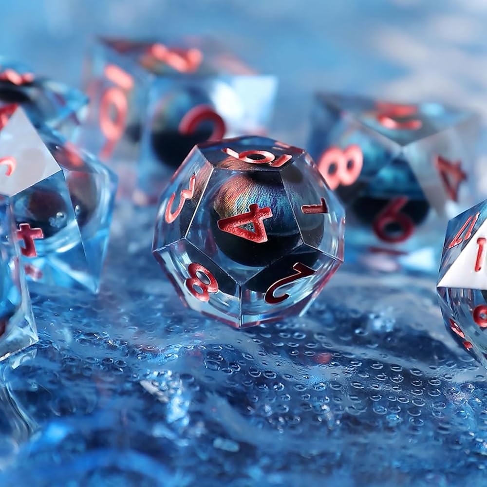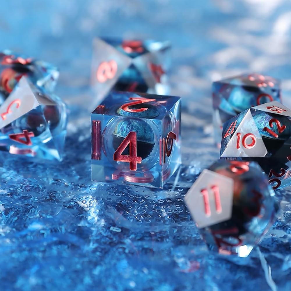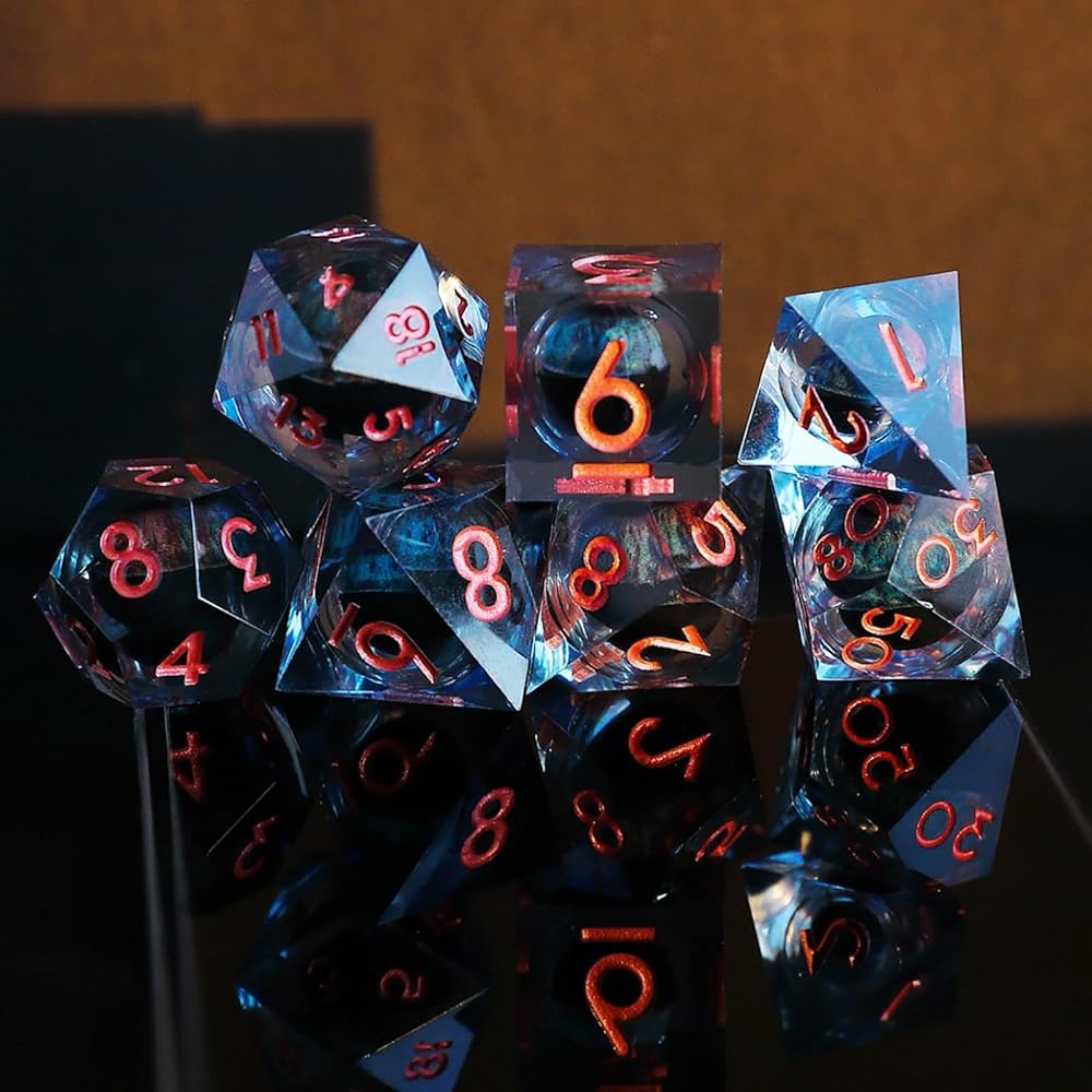 1.Dragon Eye Dice Set : The DND Dice has a dragon's eye and can be floating freely, the pupil magically finds a way to look up no matter how it lands or turns. In the game the eye of the devil will follow you, to unleash the full force of battle. One set dice total 7 pcs including D4, D6, D8, D10(0-9), D12, D20 and D%(00-90).