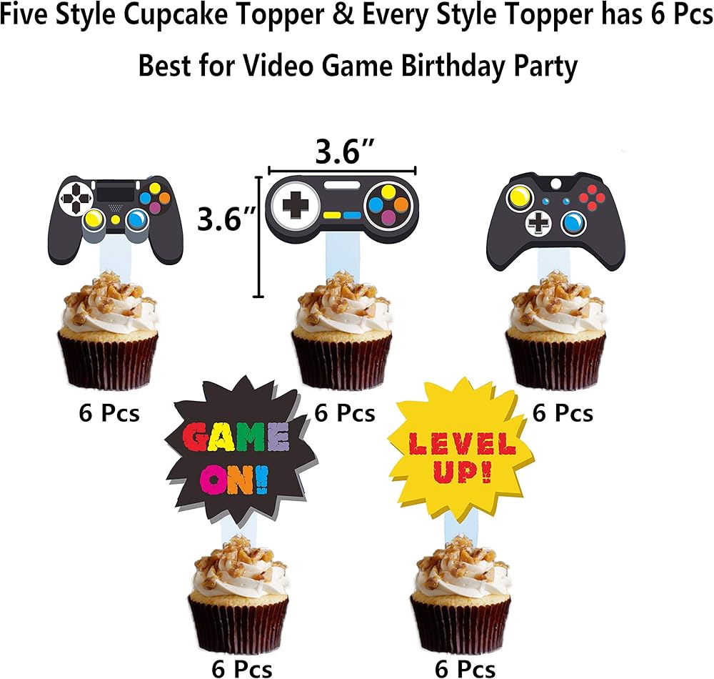 30 قطعة من ألعاب الفيديو من Weimaro لتزيين الكعك والكب كيك وزينة الكعك مثالية لحفلات ألعاب الأطفال، مستلزمات حفلات أعياد الميلاد