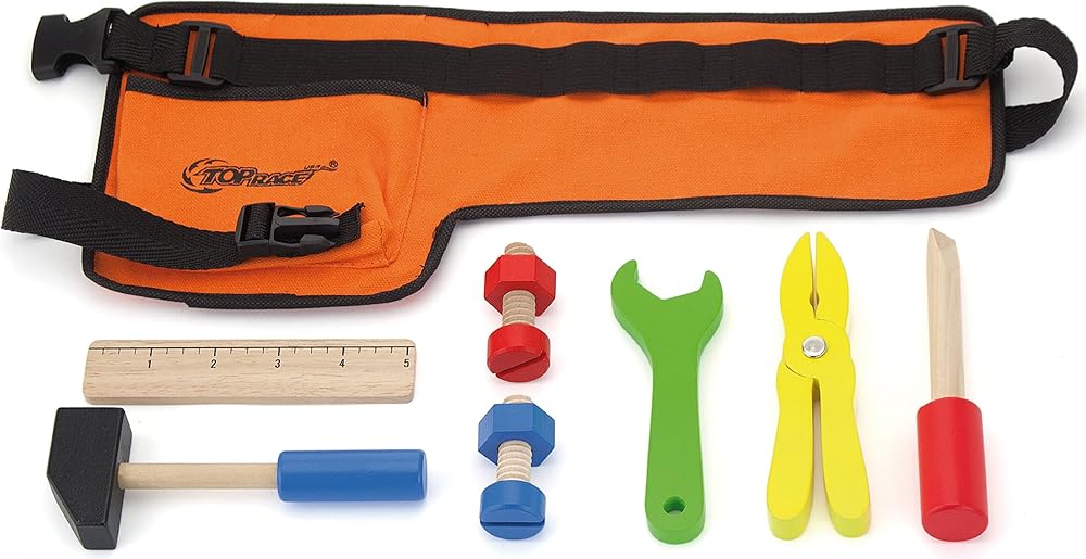 • مجموعة أدوات الأطفال: احصل على مجموعة أدوات الأطفال عالية الجودة من Top Race. تشتمل مجموعة الأدوات هذه للأطفال على حزام قماشي قوي ومجموعة من 10 أدوات خشبية.