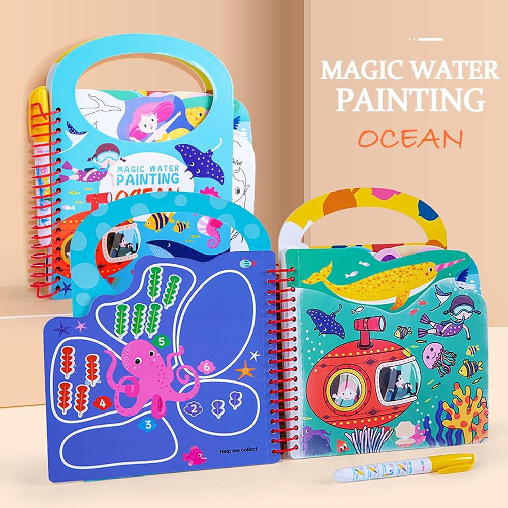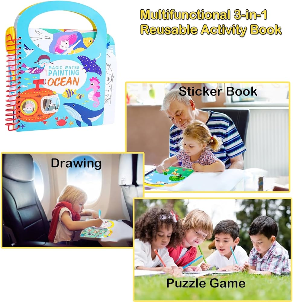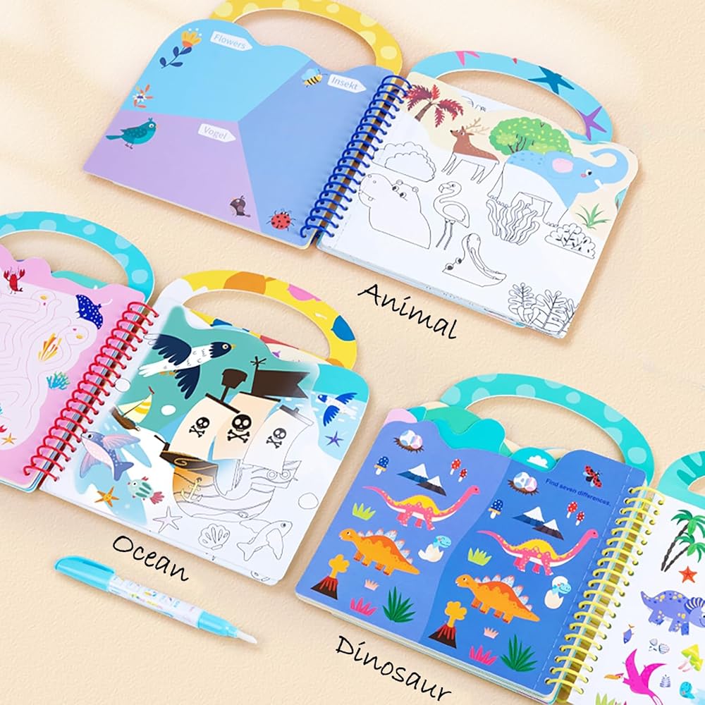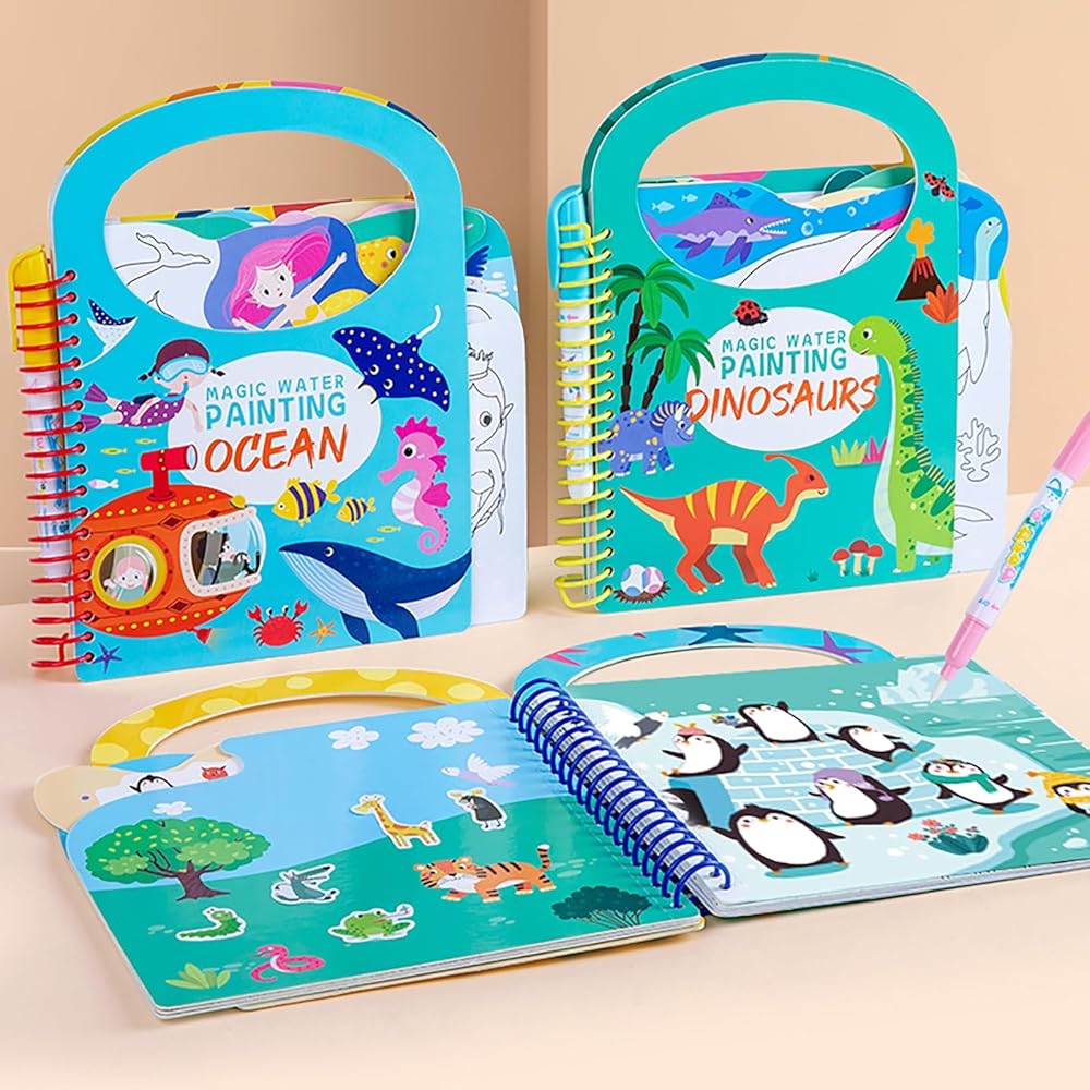 كتاب طلاء قابل لإعادة الاستخدام: ببساطة قم بالطلاء بالماء باستخدام القلم المتضمن، واتركه ليجف بعد 5-10 دقائق، ثم يمكنك رسم صورك مرة أخرى.
