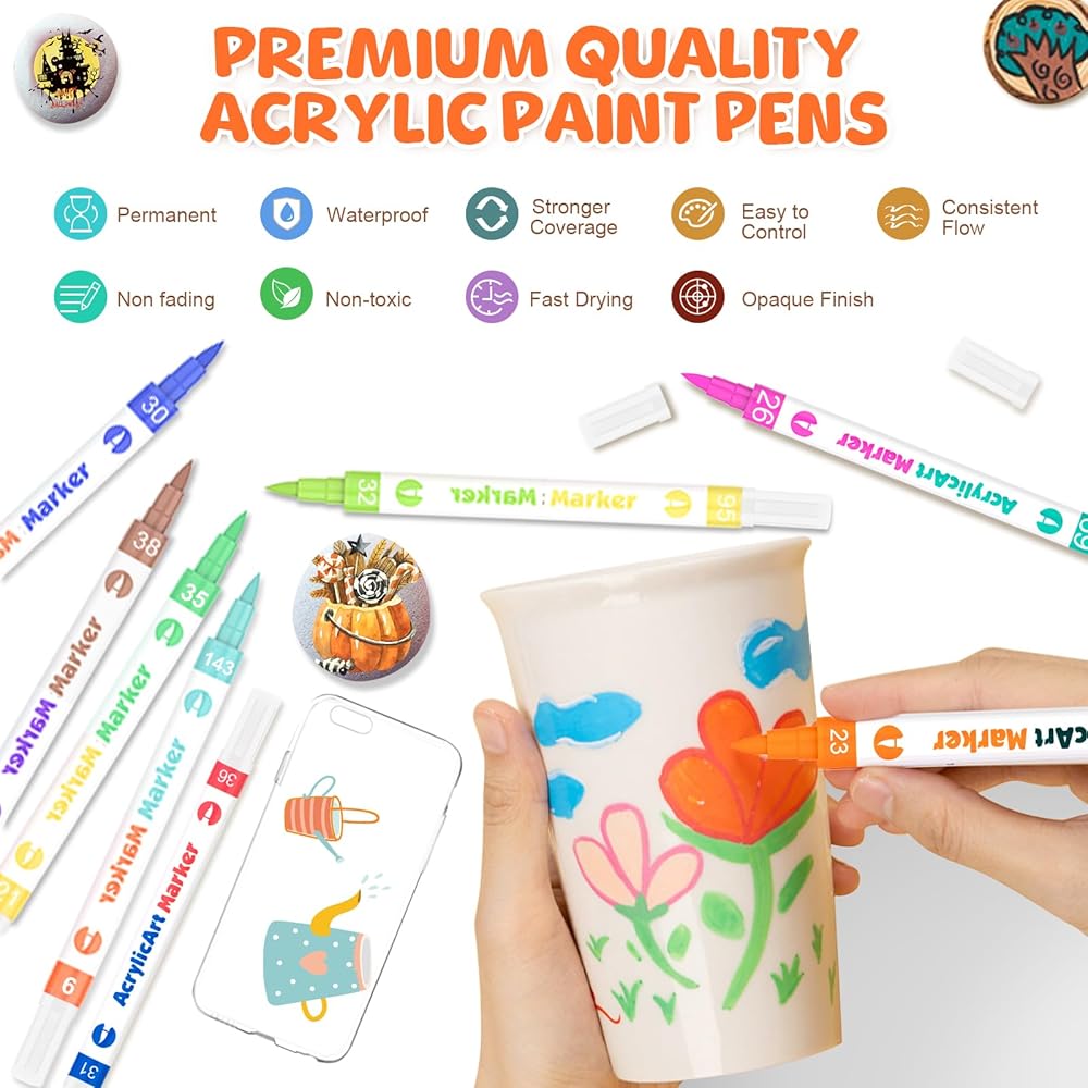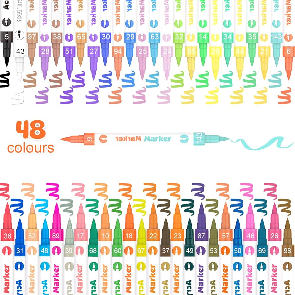 【48 لونًا ساطعًا ونابضًا بالحياة】تحتوي كل مجموعة من أقلام التحديد الفنية على 48 لونًا نابضًا بالحياة وأغطية الألوان المصممة الفريدة تجعل من السهل التعرف على اللون المناسب واختياره في كل مرة. تتميز أقلام الطلاء الأكريليك بتشبع لوني عالي ولمعان للحصول على تأثير مشرق، وتصميم مزدوج اللون وطرف مزدوج يلبي احتياجات الألوان المختلفة.