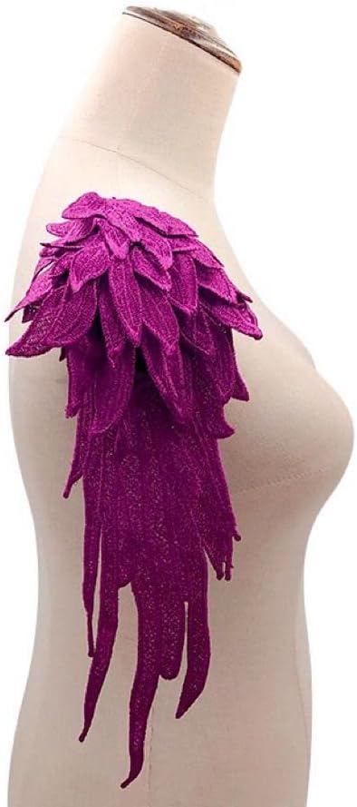 1 Pair Feather Embroidery Patches Angel Wings Water Soluble Lace Large Multi-layer Applique Wedding Bridal Dress DIY Lace Accessories,Silver Gray