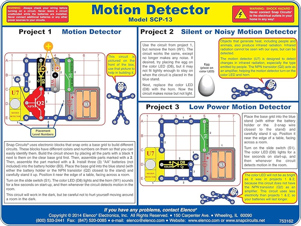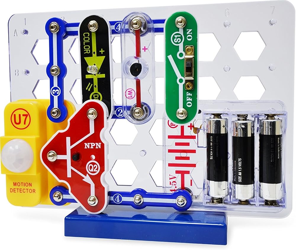 Snap Circuits(R) use brightly-colored electronic components that snap onto a clear plastic base to build different circuits