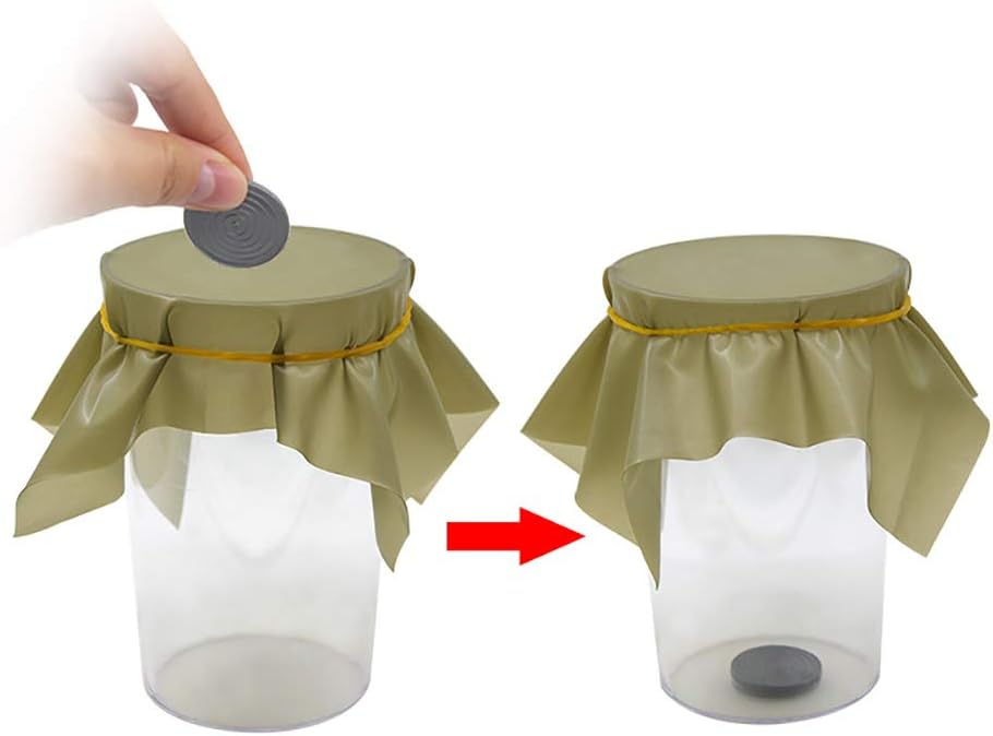 طبق خدع سحرية من بلاك هول لاختراق العملات المعدنية من خلال ورقة مطاطية في كوب ساحر دعائم ذهنية سحرية وهمية