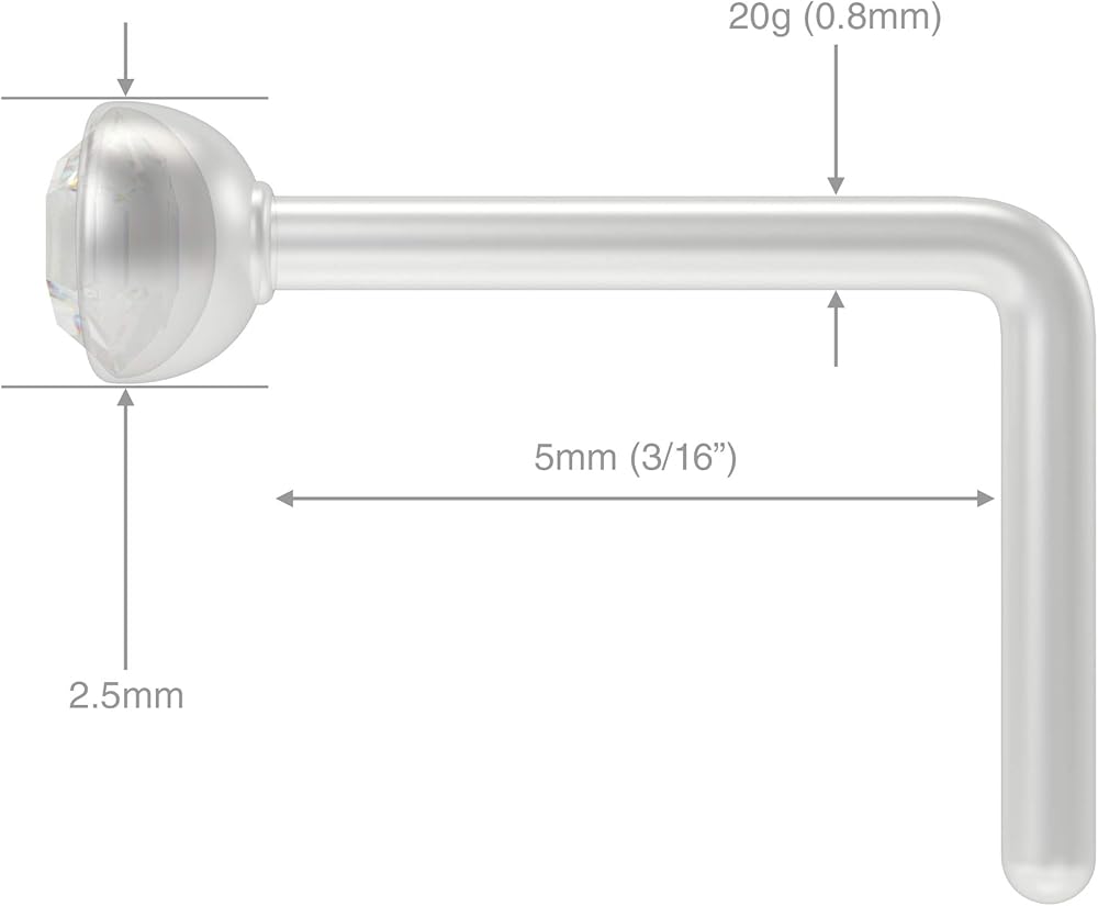 These nose ring l shaped 20g are made from implant-grade Bioflex material which is the best choice for initial piercings and sensitive skin. The nose ring l shape 20g are light-weight and do not weigh down your piercing. Wear continuously with peace of mind. Thesenose rings l shaped 20g are hypoallergenic, lead-free, nickel-free and bio-compatible.