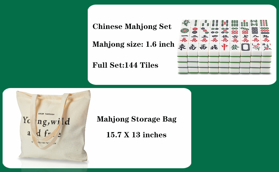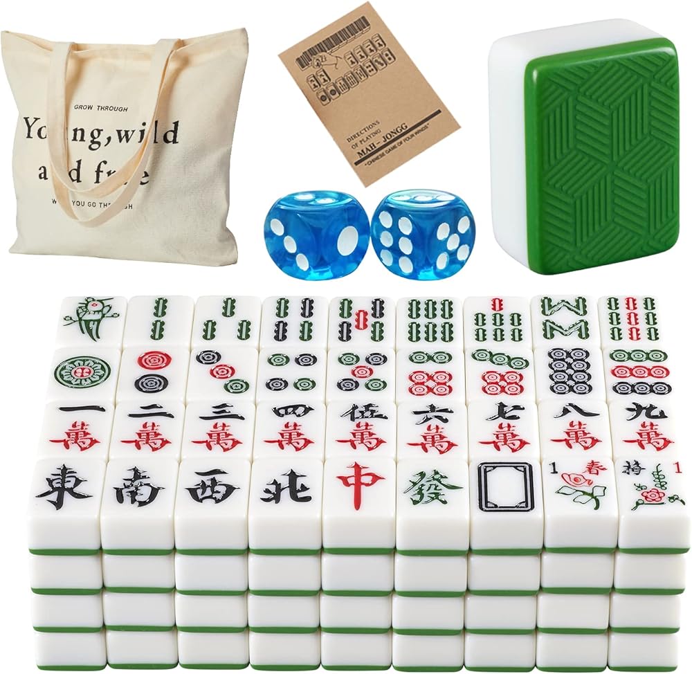 المجموعة: 144 بلاطة ماجونج، 2 نرد، 1 حزمة تخزين، دليل اللعبة