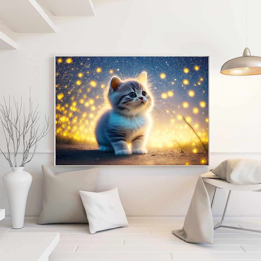 • الطلاء بالألماس: مجموعة طلاء ماسي مثقبة بالكامل 5D - لوحة ألماس للقطط اليراعات الماسية فن جوهرة الحيوانات للبالغين 12 × 16 بوصة، الترفيه والاسترخاء أعمال تزيين المنزل بنفسك.