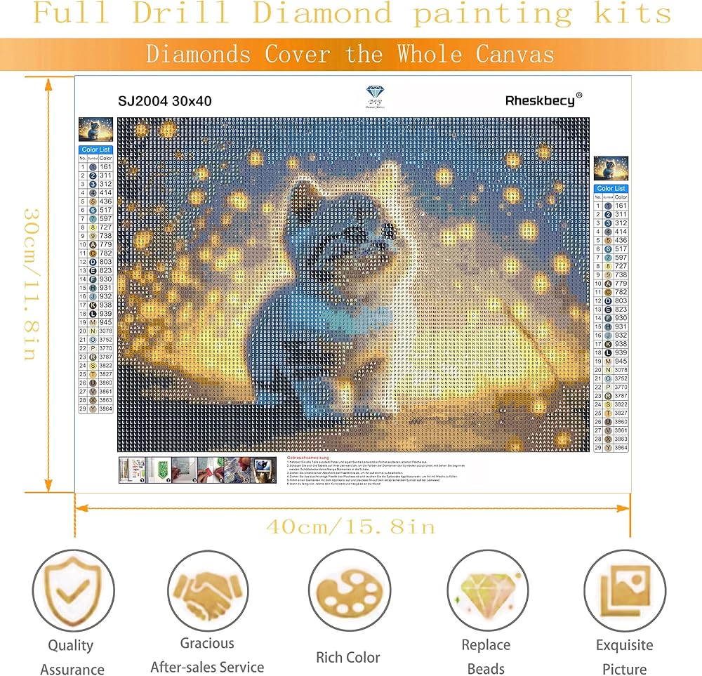 • مجموعة طلاء الأحجار الكريمة: اللوحة الفنية الماسية DIY مصنوعة من قماش زيتي مطبوع عالي الدقة وأحجار الراين الراتنجية مع بريق رائع وفريد ​​من نوعه. تم تصميم الصورة الماسية ذات التغطية الكاملة بواسطة المصمم، وتم نقش التفاصيل بدقة لاستعادة الصورة الرئيسية بشكل مثالي.