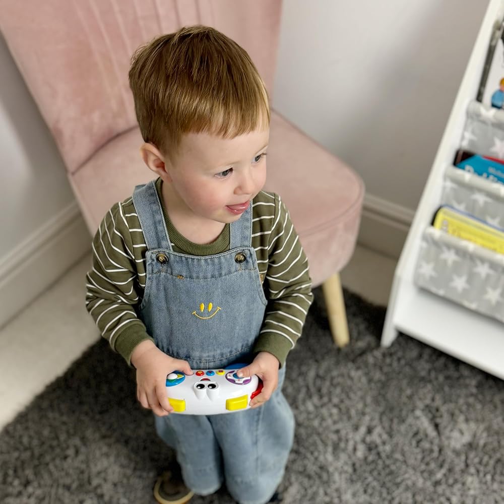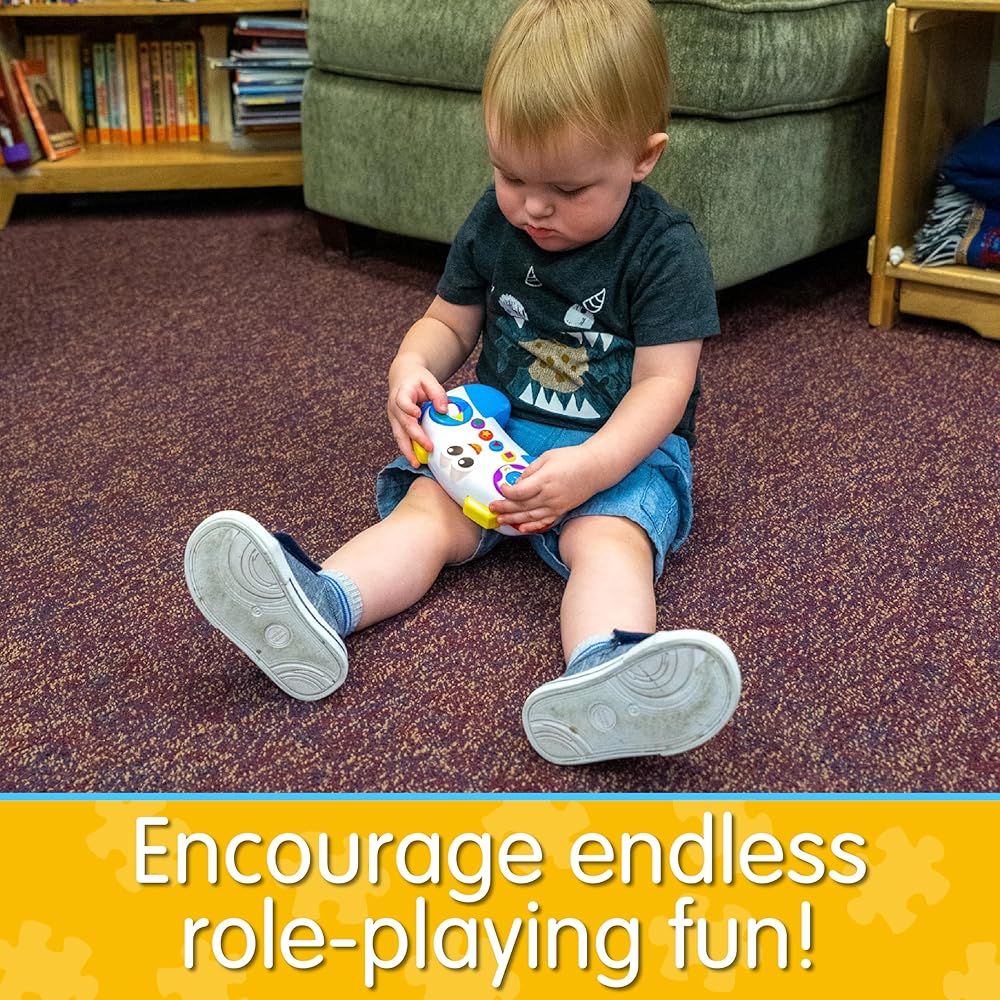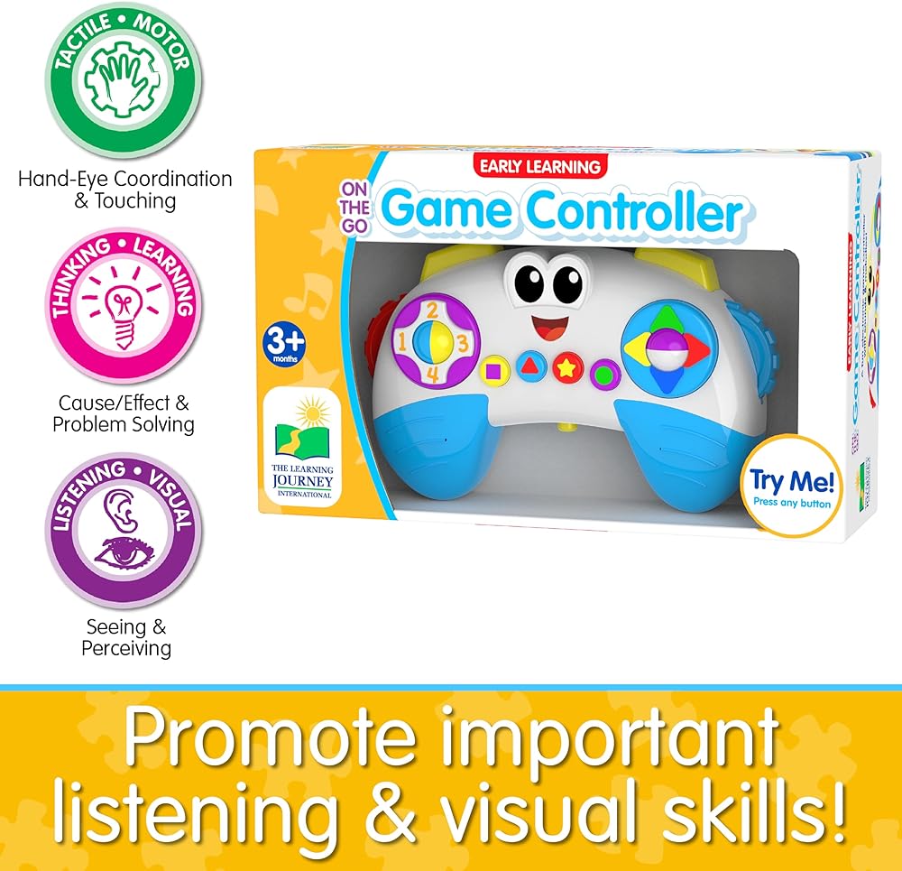 الميزات الرئيسية – تشجيع لعب الأدوار باستخدام وحدة التحكم في الألعاب On the Go! يمكن الآن للأطفال الرضع والأطفال الصغار الانضمام إلى متعة الألعاب باستخدام وحدة التحكم في الألعاب On the Go. ضع متعة كبيرة بين يدي طفلك الصغير باستخدام وحدة التحكم في الألعاب التي تشبه تلك التي يستخدمها الأطفال الأكبر سنًا! تحتوي وحدة التحكم هذه على أزرار متعددة وكرات دوارة والمزيد لتشغيل الأصوات والموسيقى وتقديم الأرقام والألوان والأشكال والمزيد! تعزف ألحانًا مبهجة، وتتضمن إضاءة LED وأنشطة حسية ووظيفة إيقاف تلقائي، وتعمل بالبطارية. تتطلب بطاريتين "AA" (متضمنة). للأعمار من 3 أشهر فما فوق.