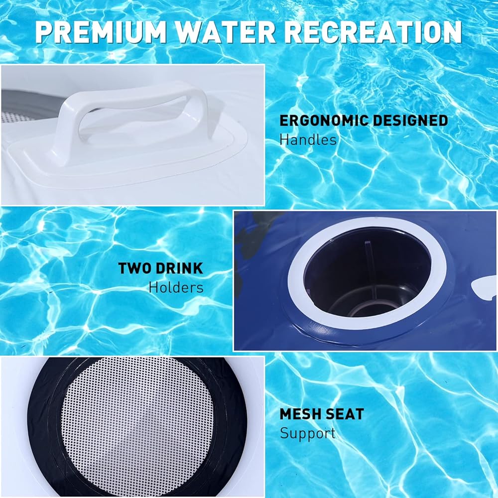 💗【FANTASTIC FEATURES 】: The River Raft comes with two heavy-duty grip handles for maximum control. The built-in drink holder conveniently keeps your refreshment nearby. The grab rope can be used to anchor with other floats. The double stitched mesh bottom encourages air flow to keep your body cool.