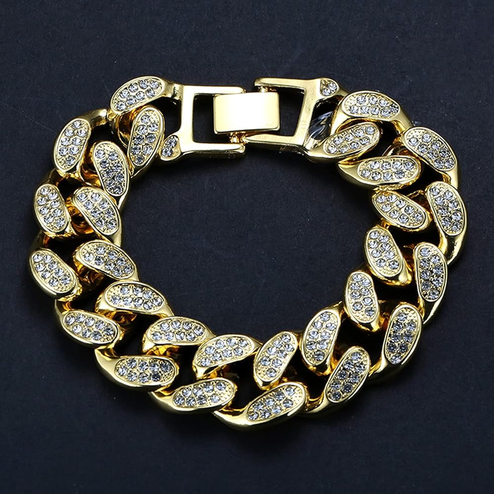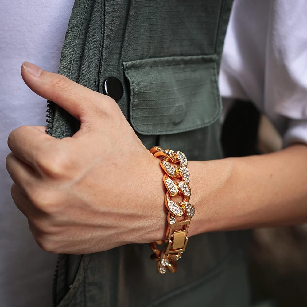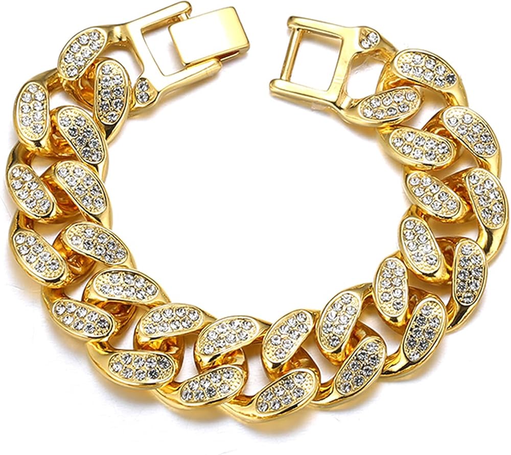 Rayfond Chains for Men Gold with Diamonds Iced Out 20mm Cuban Link 18k Real Gold/White Gold Plated Bracelet Necklace Handmade 7" 8" 8.7" 16" 18" 20" 22" 24" 30" 35" Birthday Gift Party Jewelry